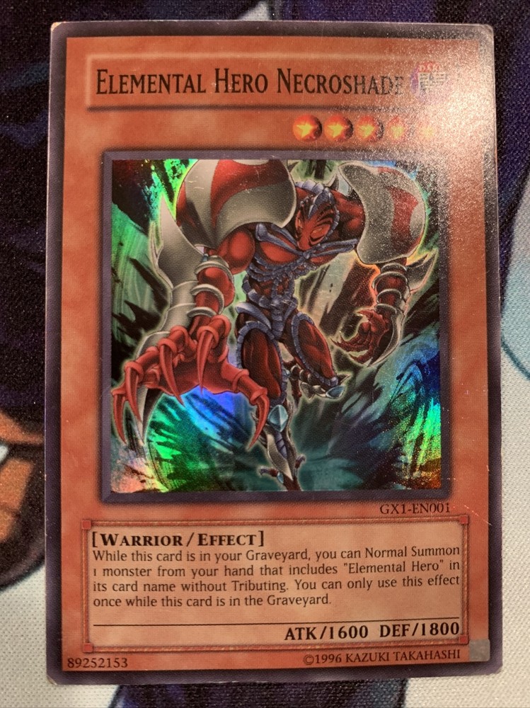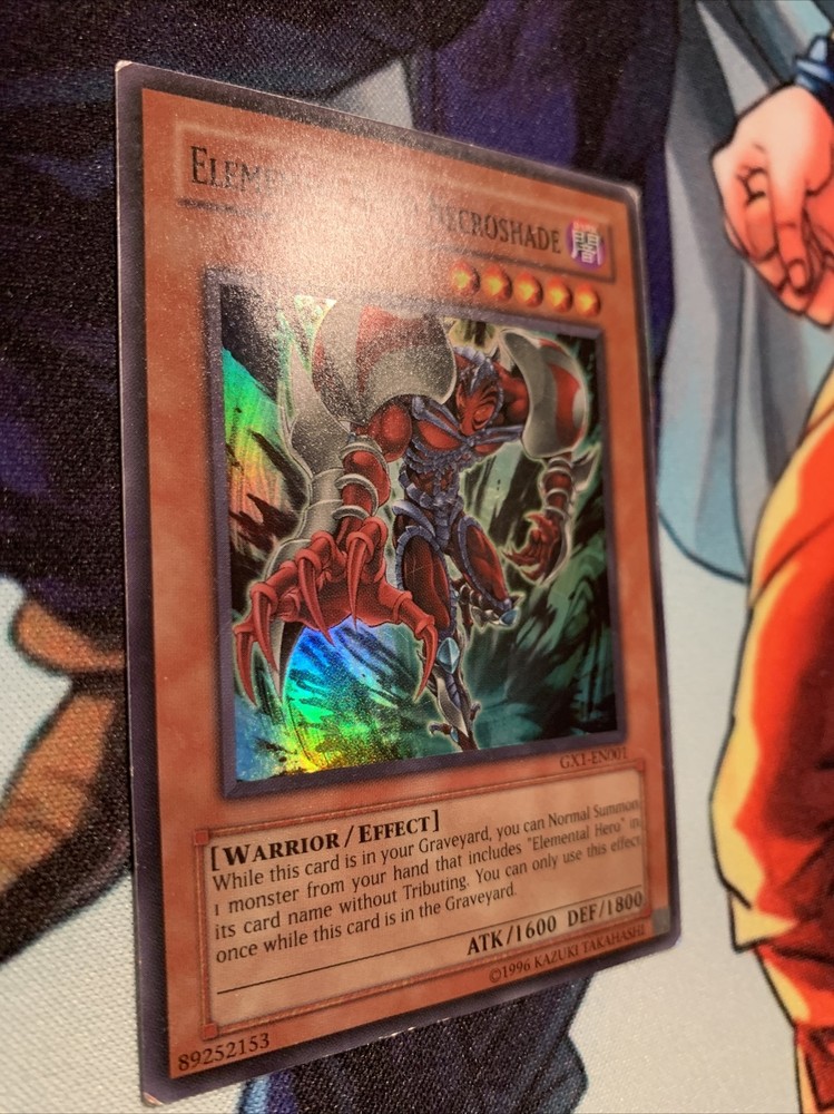 YuGiOh! Elemental Hero Necroshade GX1-EN001 Super Rare Unlimited Edition LP. There are mild edge wear and tear. Please refer to pictures for details....