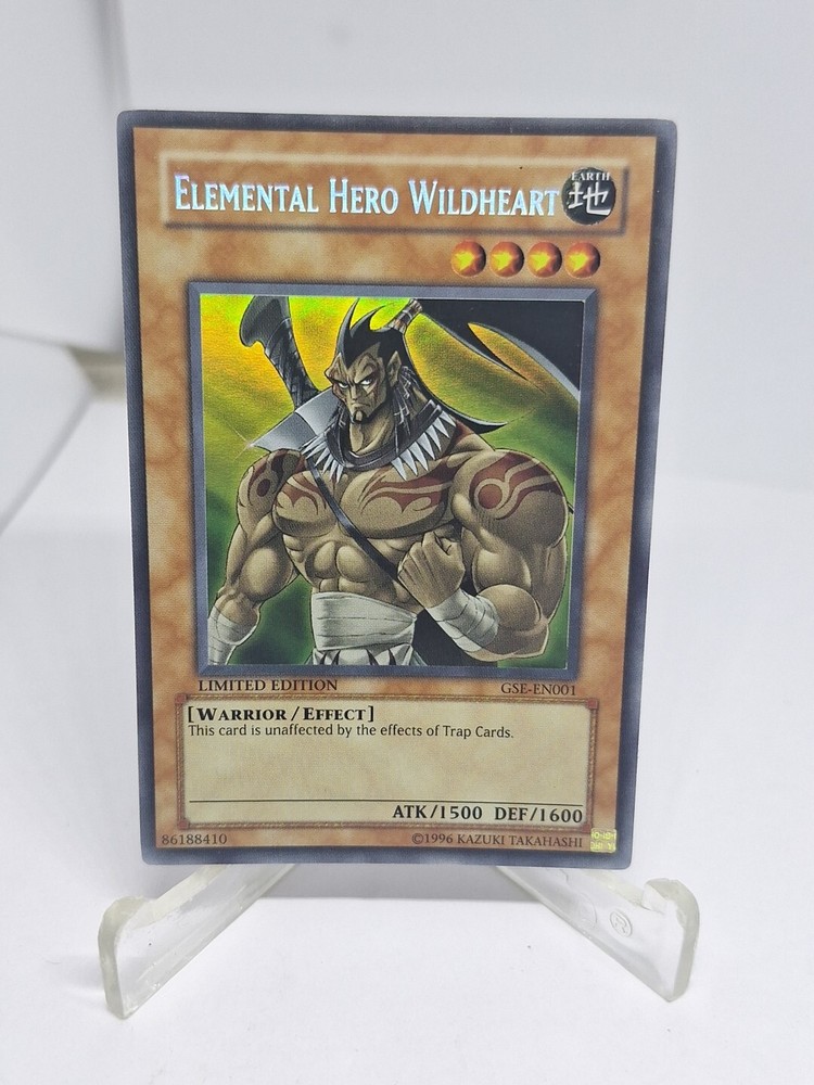 This limited edition Yu-Gi-Oh! card features the powerful Elemental HERO Wildheart, with a stunning holographic finish. It is part of the GX Special Edition set, and is a Super Rare card with the card number GSE-EN001. The card is in English language and is perfect for collectors and fans of the Yu-Gi-Oh! Trading Card Game. The card is of Standard size and belongs to the Earth attribute/color. It is an Effect card with the Speciality of YUGIOH. The card features the character Yugioh and the creature/monster type Warrior, YUGIOH. It is suitable for players aged 6+ and is a great addition to any collection.