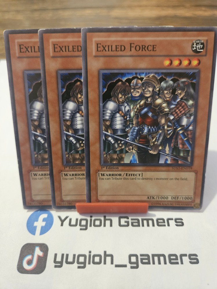 The product is a Yu-Gi-Oh Exiled Force X3 card from the 5DS1 set in the Yu-Gi-Oh! TCG game. This card is classified as a common card with the attribute of light. It is part of the Yugi set and features the character family of Yu-Gi-Oh! The Exiled Force card is identified by its card number 1 and is a sought-after collectible for fans of the Yu-Gi-Oh! franchise.