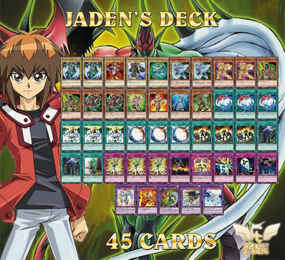 Hello all I am a New Ebay Seller!!! I am a Female Yugioh & Magic Collector!!! Happy Bidding!!! A bonus for ordering you will also Get a Free Holo Card from my collection. It maybe Super Rare, Ultra Rare, or SECRET Rare!!! Picture may have been edited due to Inventory Changes Please read description Below Shipping - All orders will be shipped with bubble mailer and a protective case. - I ship to both Domestic (U.S.) and International destinations! Please Allow me up to 10 Business days before the item will be shipped!!! Thank You!!! **If you are a international buyer, Customs Fees are the responsobility of the Buyer** Payment - Please pay within 3 days of your order to avoid an Unpaid Item Case. This just helps me run things smoothly for other bidders/buyers and myself. Will appreciate if you please leave feedback when you receive your item, and I will leave feedback as well. Contact me if anything is wrong with your order so I can have a chance to fix the issue- Your satisfaction is most important! Item for sale is: You will receive: - Complete 45 Card Jaden Yuki's Deck 22 Monsters: 1x Elemental HERO Shining Flare Wingman (lp-mp) 1x Elemental HERO Flame Wingman (Rare) (LP-MP) 1x Elemental HERO Nova Master (Ultra Rare) 1x Elemental HERO Great Tornado 1x Elemental HERO Absolute Zero 2x Elemental HERO Avian 2x Elemental HERO Bubbleman 2x Elemental HERO Bladedge 2x Elemental HERO Wildheart 2x Elemental HERO Necroshade 1x Elemental HERO Burstinatrix 1x Elemental HERO Sparkman 1x Elemental HERO Clayman 1x Elemental HERO Voltic 1x Elemental HERO Heat 1x Elemental HERO Ocean 1x Elemental HERO Woodsman 15 Spell Cards: 3x Double HERO Attack (Ultra Rare) 3x A Hero Lives 3x Parallel World Fusion 3x Miracle Fusion 2x Skyscraper 1x Hero Mask 8 Trap Cards: 3x Hero Blast 2x Battleguard Howling 1x Hero Signal 1x Hero Medal 1x Final Fusion