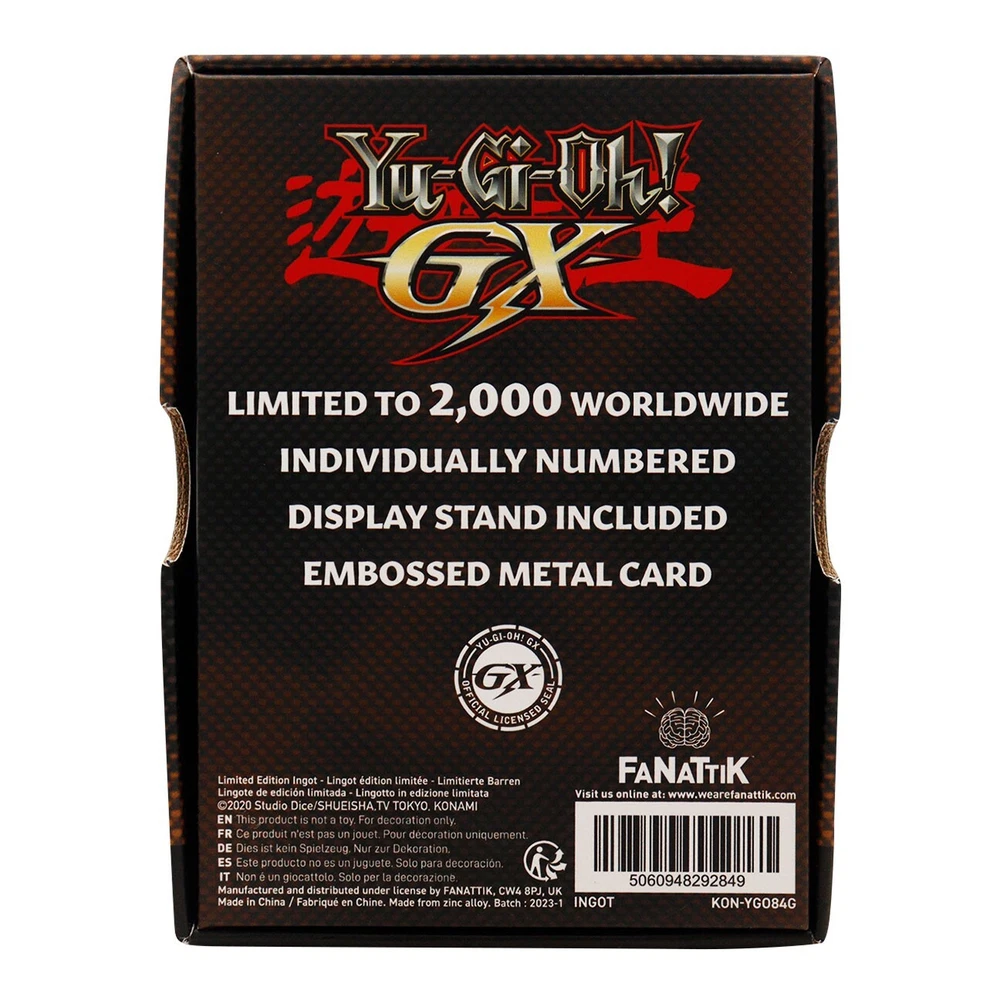 Complete a total deck wipeout with this Limited Edition Elemental Hero Burstinatrix 24k gold plated ingot. This heavily embossed collectible measures approximately 7.5 x 5.3cm and is limited worldwide to 2000. Every ingot is individually numbered and includes a display stand within its presentation box.