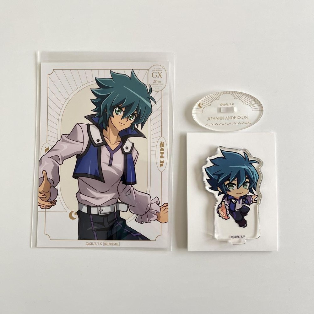 This YuGiOh! GX Johann set is awesome! The acrylic stand is super cute with its chibi design, and the postcard adds extra value. Even though it's used, the condition looks great—no bends or damage. Perfect for any YuGiOh! fan’s collection!