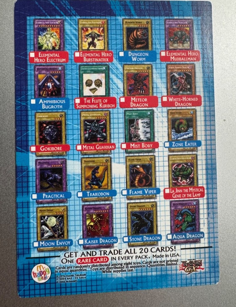 Yu-Gi-Oh! GX McDonalds Happy Meals Promo Card Checklist RARE Item comes from a smoke free environment Please view our other items to save and combine on postage. Thank you for looking. Please save us as a favourite seller and sign up for our mailing list for news, updates and specials just for you. Do you have an item or collection you are thinking about selling? We are always interested in buying. Send us a message with details.