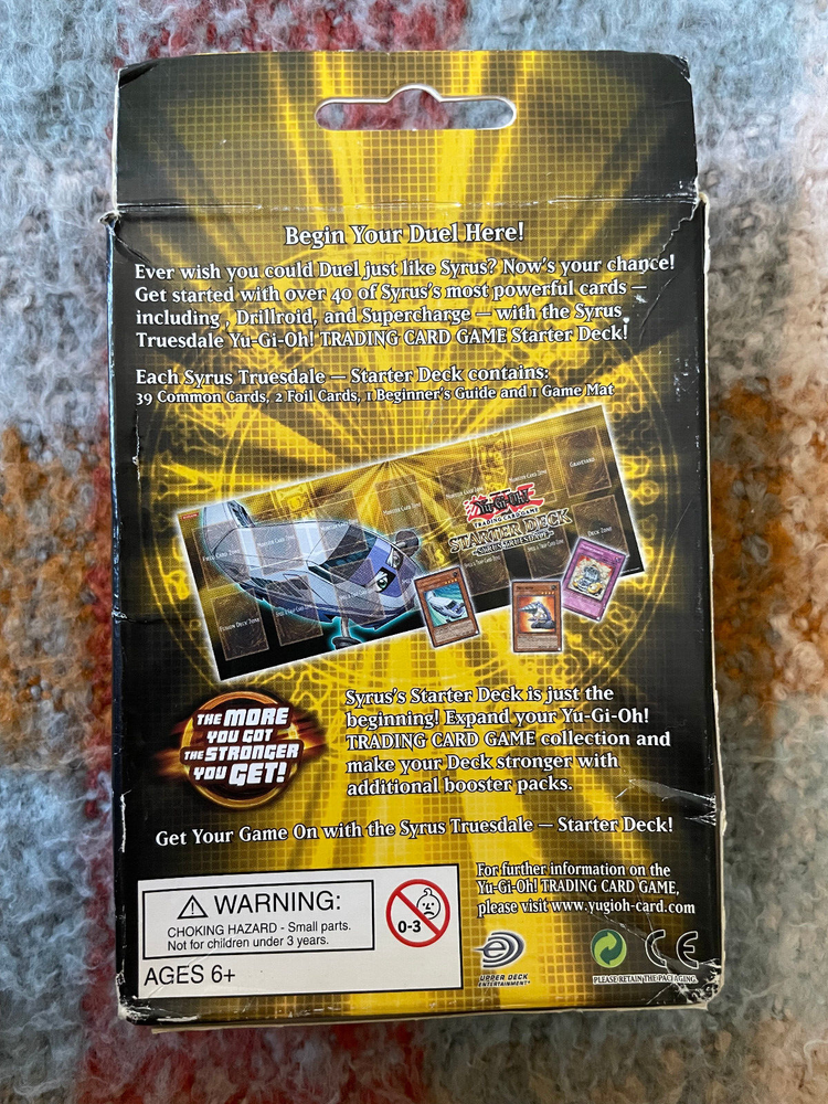 1st Edition Yu-Gi-Oh! Syrus Truesdale Starter Deck (YSDS) Brand New, Still Sealed, Never Used While the outer box has been opened and is slightly damaged, the actual deck of cards inside remains brand new and sealed. Syrus Truesdale Starter Deck comes complete with: 1x Pre-Constructed Dech of 41 Cards 1x Ultra Rares 1x Super Rares 39x Commons 1x Playmat 1x Beginner's Guide Please check out my other listings, including Yu-Gi-Oh!, Final Fantasy, Nier and other JRPG Games and Mechandise! If you have any questions, please don't hesitate to message me! Thanks for looking!