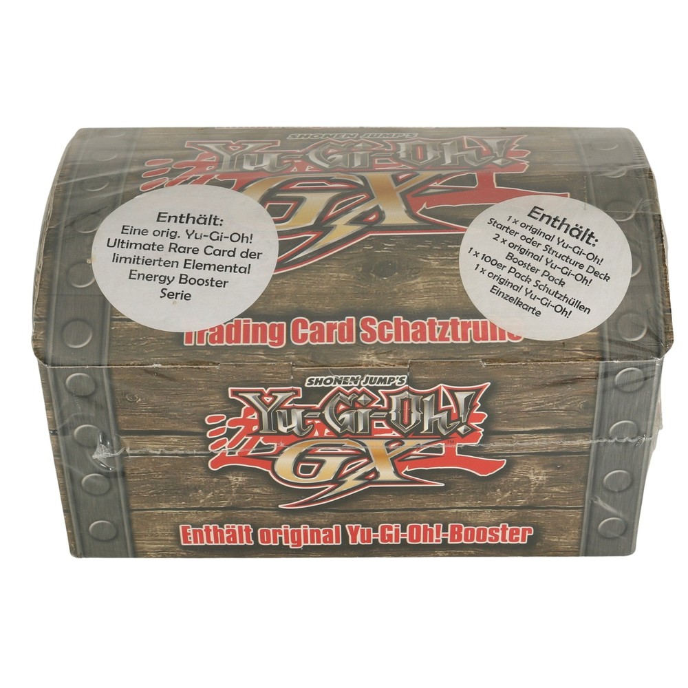 HOTLINE: +49 (0) 7 11 35 58 00 Yu-Gi-Oh GX- Original Trading Card Schatztruhe - OVP / Deutsch Yu-Gi-Oh GX- Original Trading Card Schatztruhe - OVP / Deutsch Artikel: Yu-Gi-Oh Schatztruhe – DEUTSCH Hersteller: Konami Zustand: Neu & originalverpackt. Inhalt: 1x Yu-Gi-Oh Starter oder Structure Deck 2x Yu-Gi-Oh Booster Pack 1x 100er Pack Schutzhüllen 1x Original Yu-Gi-Oh Einzelkarte Achtung: Nicht geeignet fur Kinder unter 3 Jahre – verschluckbare Kleinteile!