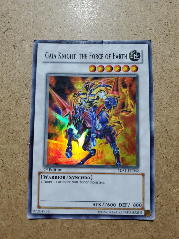 YuGiOh Gaia Knight, the Force of Earth 5DS1-EN042 Super Rare 1st Edition Holo Small bend in middle/top card...