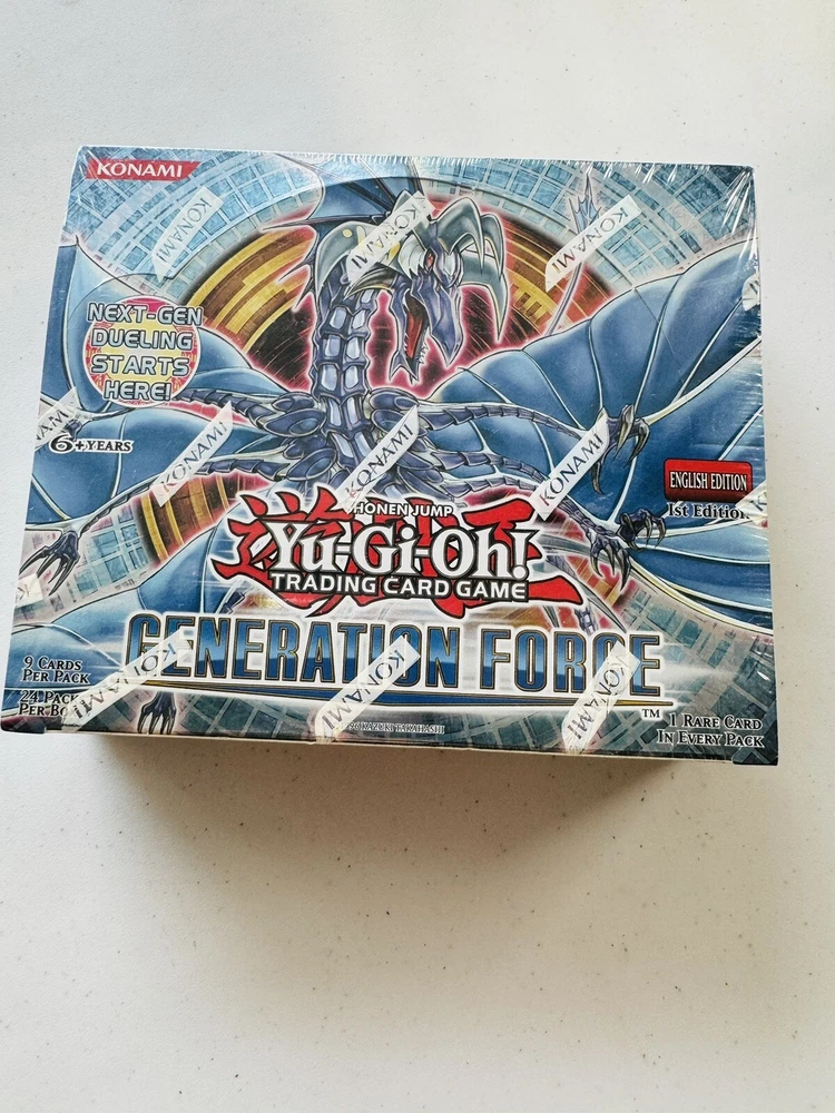 As title states. Yu-Gi-Oh! 5DS Generation Force 1st Edition Booster Box Factory Sealed This item is guaranteed authentic , unopened , and untampered. 1 owner item. 8 clean corners Cellophane is 100% intact , original with no rips or tears . Box shows minor signs of shelf life on the bottom