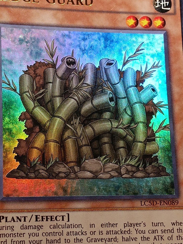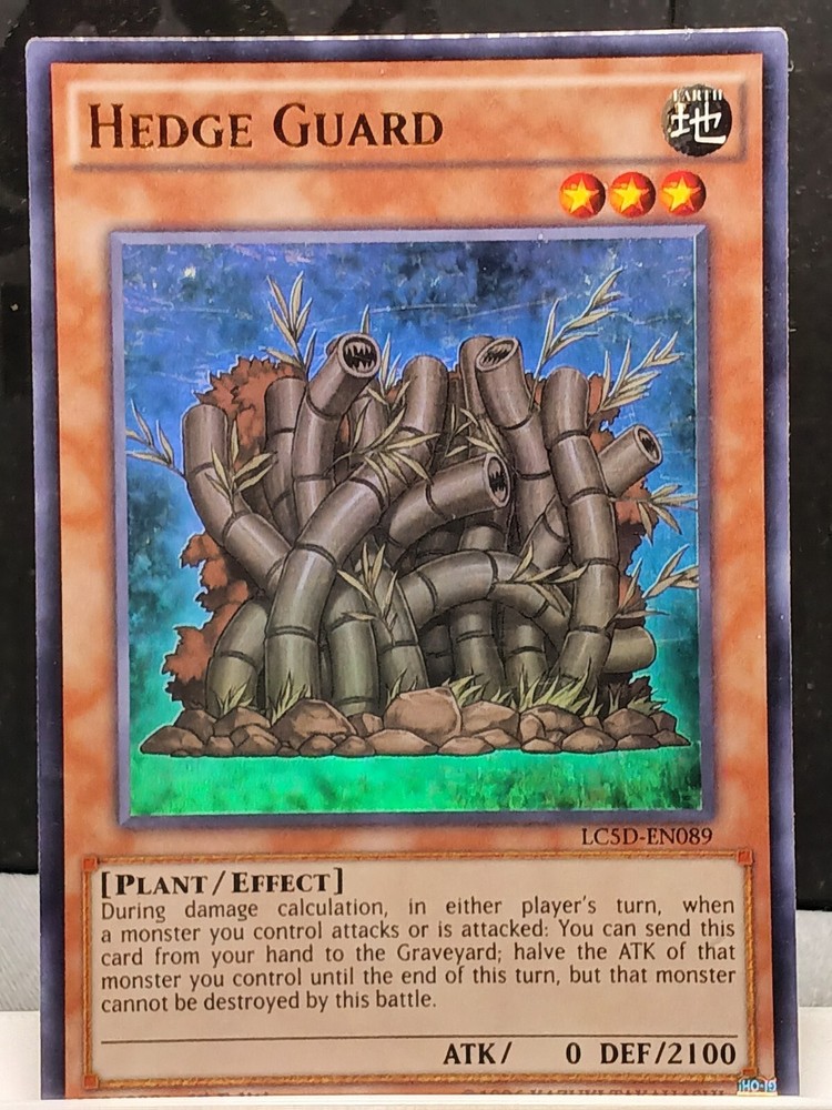 This Yu-Gi-Oh! card is a must-have for any collector or player. With its Ultra Rare 1st Edition Holo Foil finish, the Hedge Guard LC5D-EN089 card is a Japanese-sized card made of high-quality card stock material. The card belongs to the Legendary Collection 5D's set and features an Aqua creature/monster type with 2100 defense/toughness and 0 attack/power. This English-language card is an effect type with no autograph and is manufactured by Konami in the United States. It is perfect for those who enjoy the Yu-Gi-Oh! TCG game and is a great addition to any collection. Get your hands on this rare card today!
