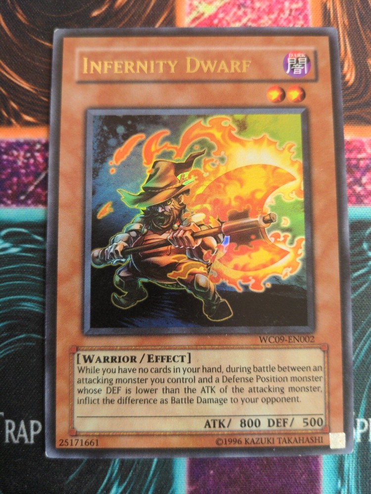 Yu-Gi-Oh! Infernity Dwarf WC09-EN002 Limited Ultra Rare NM/LP. White specks on back surface, titch of whitening on corners