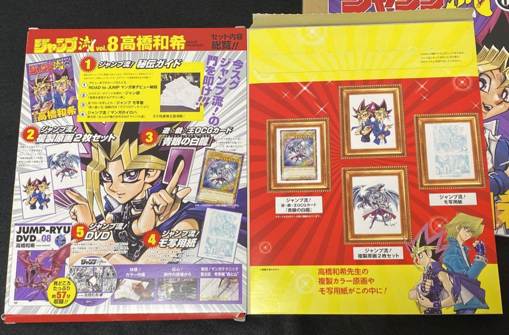This limited edition Yu-Gi-Oh Jump-Ryu vol.8 art book is a must-have for any fan, featuring artwork from the popular anime and manga series. The book measures approximately 30.1 x 23.6 x 2.1 cm and includes a card, DVD, and magazine, all in Japanese language. The book features artwork by Kazuki Takahashi and is published by Shueisha. It was released in 2016 and includes aspects such as the anime studio Aardman Animations, the convention Anime Expo, and the character Kaiba Seto. This item is a great addition to any Yu-Gi-Oh! or anime & manga collection.