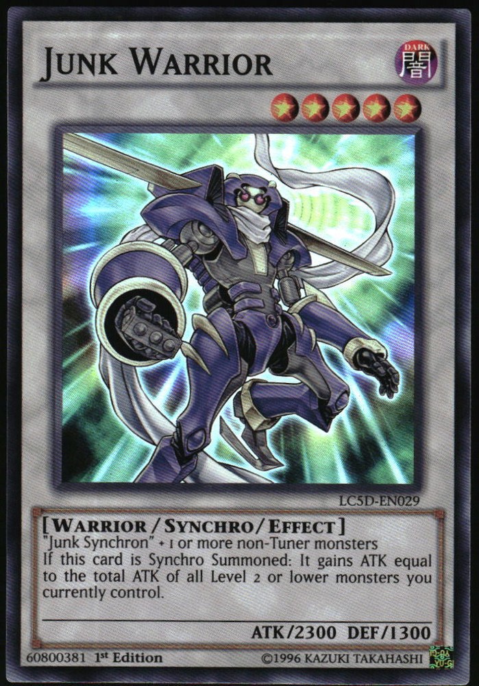 This Junk Warrior Super Rare card is a must-have for any Yu-Gi-Oh! collector! The 1st Edition print from LC5D looks fantastic, with crisp artwork and great condition. Perfect for competitive play or display—highly recommended for fans of 5D's era cards!