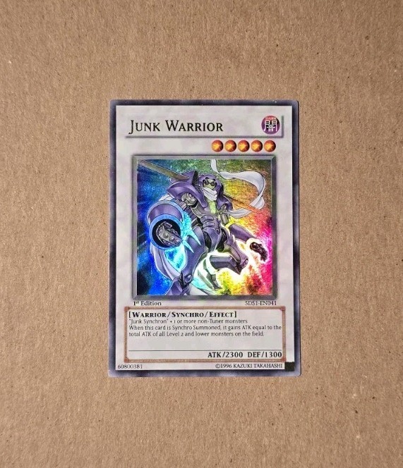 Unleash the power of strategy with the YuGiOh Junk Warrior 5DS1-EN041 1st Edition Ultra Rare card. A must-have for collectors and duelists alike, this card is a testament to Konami's dedication to quality and gameplay depth. Featuring English text, it's ready for both collection and action in your next TCG battle. Elevate your game today with this iconic Junk Warrior card, boasting the prestige of a 1st Edition Ultra Rare. Perfect for rounding out your deck or as a centerpiece in your collection, it's an essential addition for enthusiasts looking to make a statement in the world of Yu-Gi-Oh! TCG.
