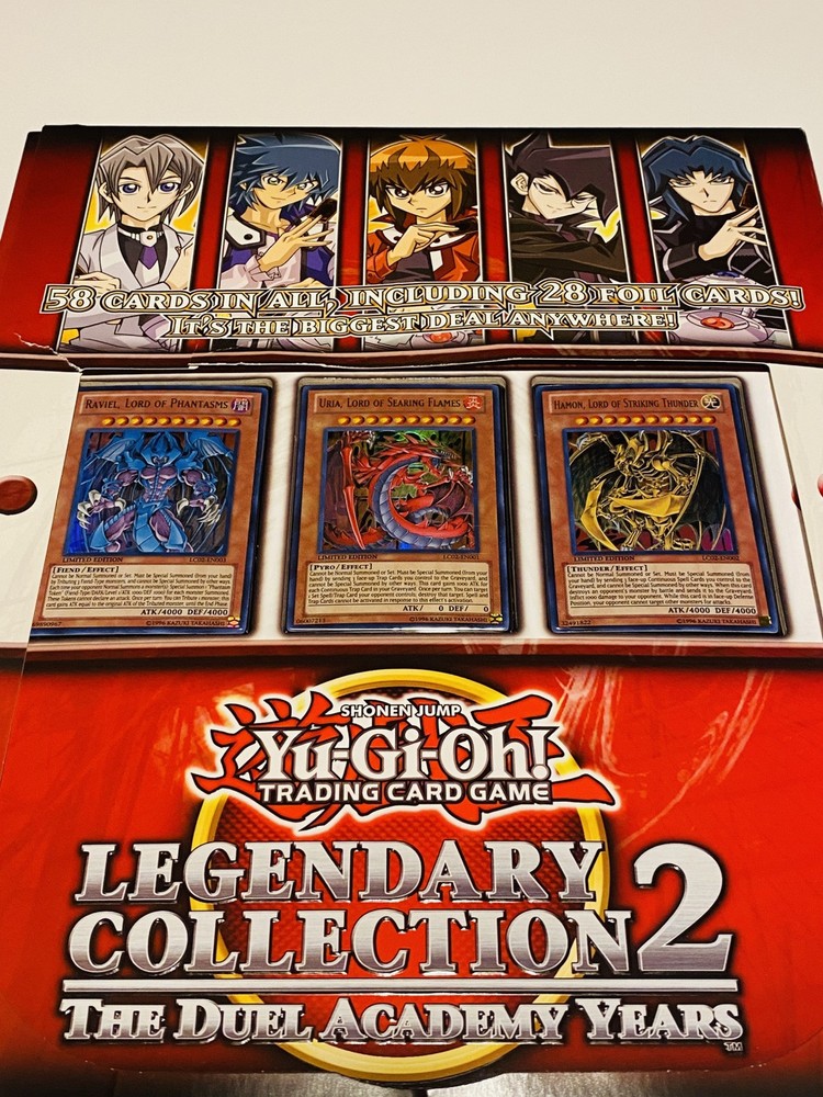 YuGiOh Legendary Collection 2 The Duel Academy Binder Sacred Beast Cards Include Sacred Beasts cards have never been removed from plastic inserts. In excellent condition. Binder has a few tears please see pictures for condition. Overall great condition
