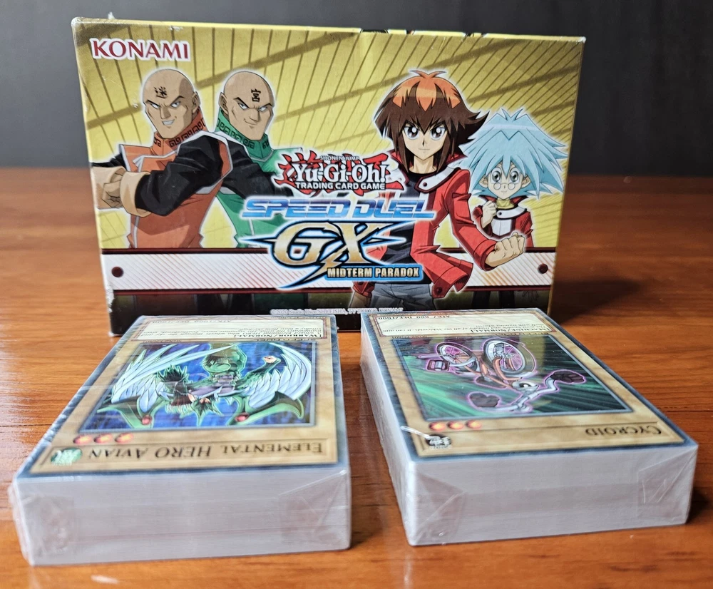 Yu-Gi-Oh! by Konami Mini Box Speed Duel GX Midterm Paradox Mini-Box includes: 100 Common Cards 12 Skill Cards 4 Secret Variant Cards 1 Dueling Guide Dated 2020 Please note that the box was opened, and the card packages are factory sealed. From a smoke-free environment. Combined shipping available. Thanks for looking.