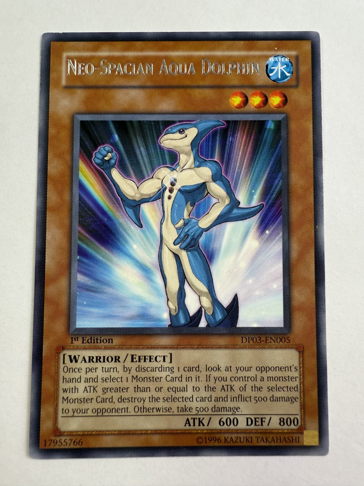 Immerse yourself in the strategic depths of the Yu-Gi-Oh! TCG with the Neo-Spacian Aqua Dolphin card, a valuable addition to any deck. Hailing from the 5D's Duelist Toolbox set, this rare effect card is a must-have for players seeking to enhance their game with a touch of aquatic prowess. The Aqua Dolphin comes as a sought-after 1st Edition, featuring the distinctive Rare card identifier DP03-EN005. With its unique abilities, it has the potential to turn the tide of battle in your favor, making it a worthy centerpiece in your collection or a tactical asset during gameplay.