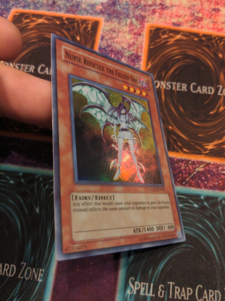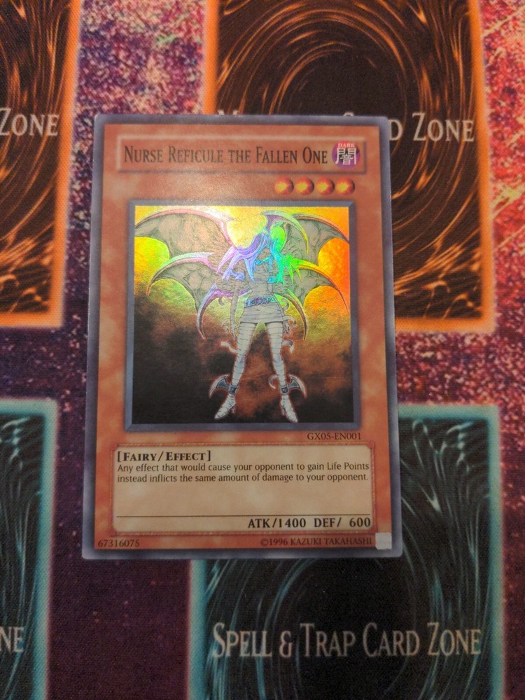Yu-Gi-Oh! Nurse Reficule The Fallen One GX05-EN001 Limited Super Rare NM/LP. Speck of white on corners back surface, some smudging on back