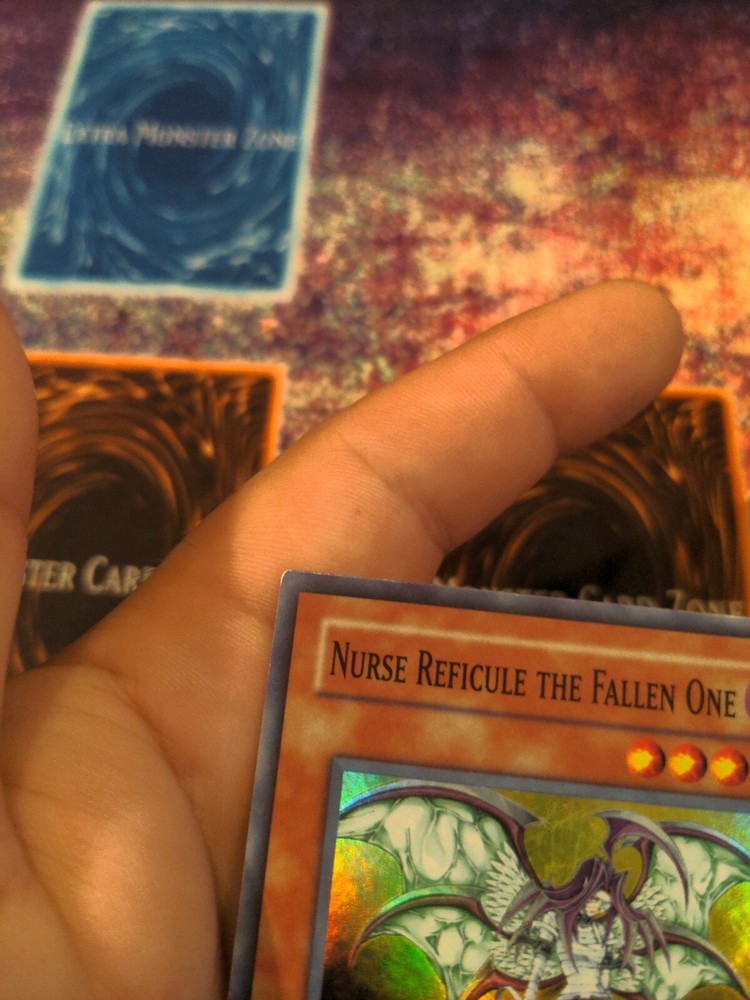 Yu-Gi-Oh! Nurse Reficule The Fallen One GX05-EN001 Limited Super Rare NM/LP. Speck of white on corners back surface, some smudging on back...