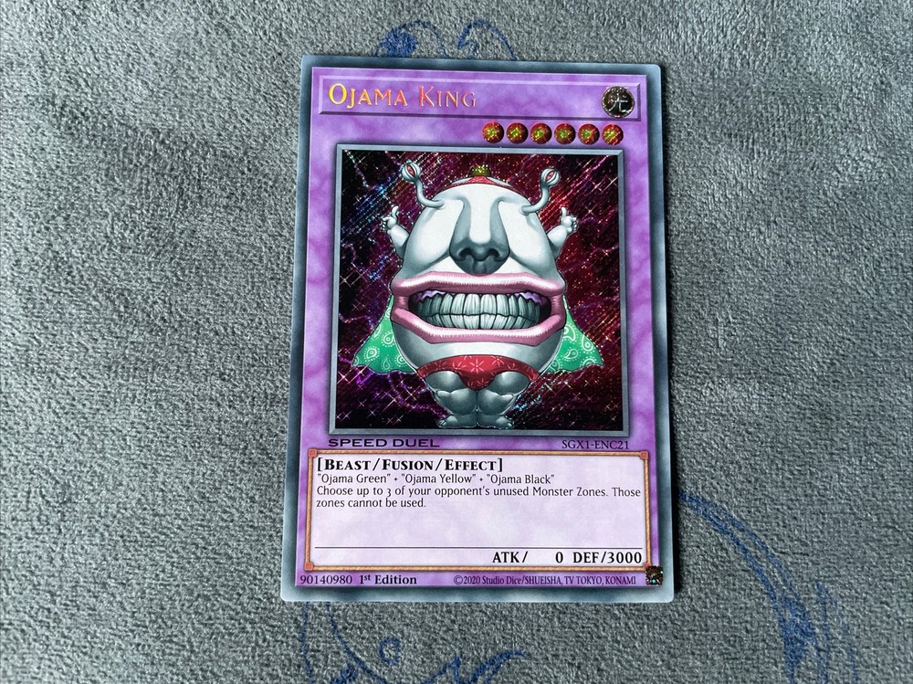 Yu-Gi-Oh! TCG Ojama King SGX1-ENC21 Secret Rare 1st Edition Near Mint. Condition is Ungraded. Shipped with eBay Standard Envelope for Eligible Items up to $20....