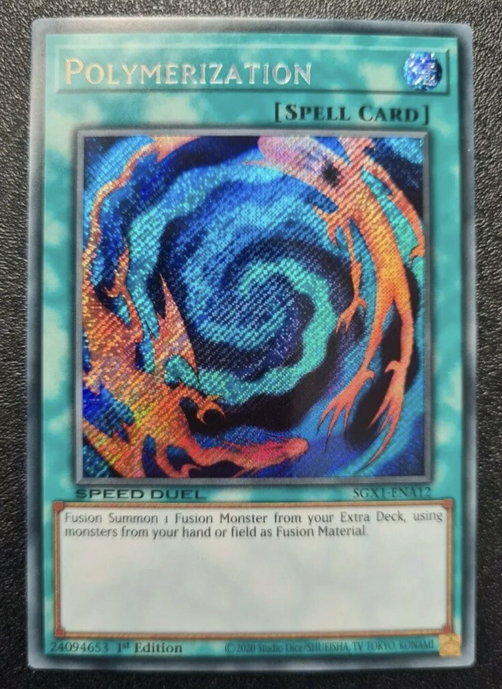 Yu-Gi-Oh! POLYMERIZATION SECRET RARE SGX1-ENA12 1ST EDITION MINT!. This item will be sent in a plastic sleeve/deck protector sleeve and in a toploader for maximum protection. Shipping is FREE! I usually ship out the next business day. Payment is due immediately. The faster the payment the faster i'll ship out. Questions or comments?? Feel free to contact me. I'll get back to you within 24 hours. Check out my eBay store for more Yugioh items!