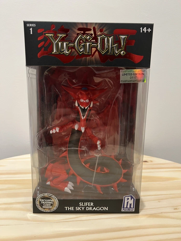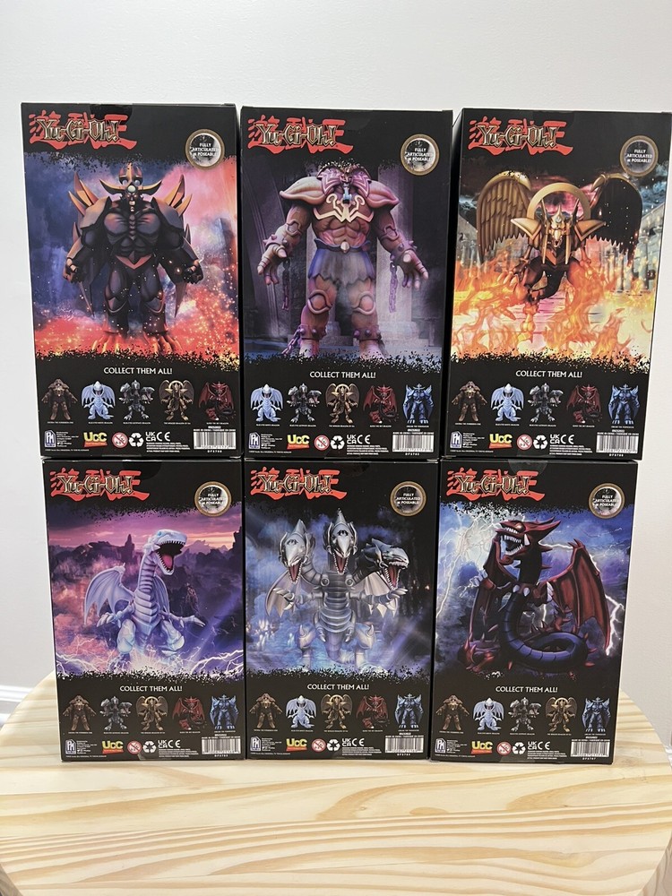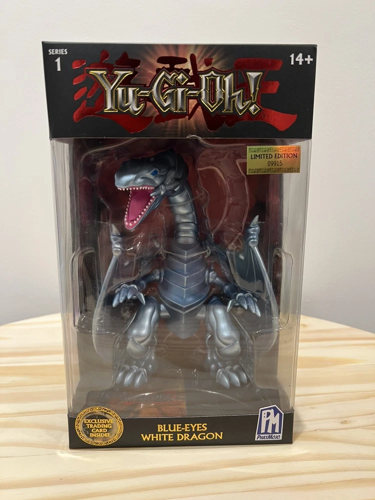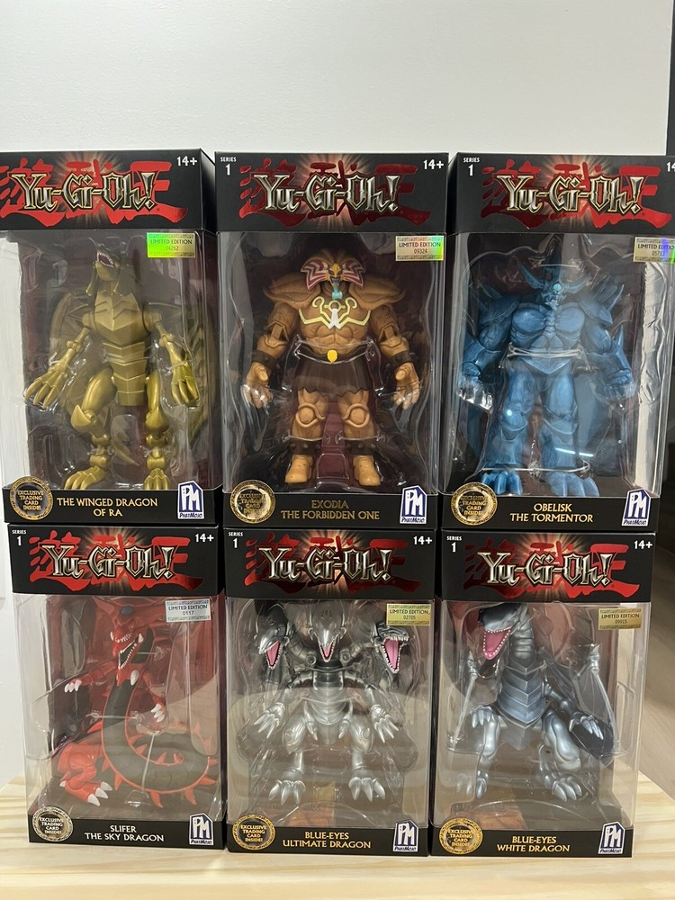 The Yu-Gi-Oh PhatMojo Series 1 set includes 6 action figures of iconic characters like Blue-Eyes White Dragon and Exodia The Forbidden One. Each figure stands 7 inches tall, made of plastic, and comes in original boxed packaging. This limited edition exclusive collection features popular monsters from the Yu-Gi-Oh! franchise, perfect for fans of the TV show and movie.