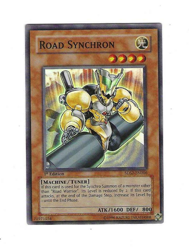 Yu-Gi-Oh! "Road Synchron" 1st Edition card designated 5DS2-EN006. Played condition (EX+). Actual item pictured. Don't miss this sharp Road Synchron card for your Yu-Gi-Oh! gaming collection!! Buyer pays $4.50 USPS 1st Class shipping in the United States (international extra). Seller combines shipping on multiple auction wins (cards 1-5 ship for $4.50). To assure combined shipping, please wait for Seller to send an invoice.