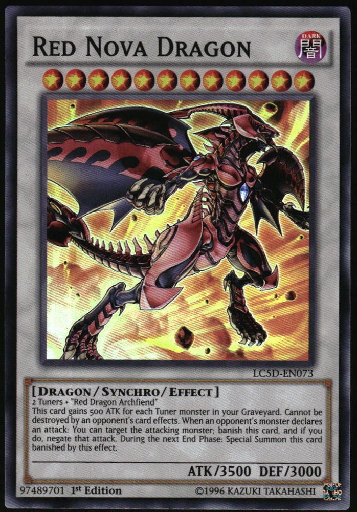 Yu-Gi-Oh! - Red Nova Dragon 2014 LC5D-EN073 Super Rare 1st Edition Yu-Gi-Oh! - Red Nova Dragon 2014 LC5D-EN073 Super Rare 1st Edition Yu-Gi-Oh! - Legendary Collection 5D's Structure Deck Red Nova Dragon 2014 LC5D-EN073 Super Rare 1st Edition Details Set: Legendary Collection 5D's Structure Deck Card: Red Nova Dragon Number: LC5D-EN073 Manufacturer: Yu-Gi-Oh! Year: 2014 Variation: Super Rare Version: 1st Edition Notes: Images on listing are scans of actual card you will receive, please use photos to determine condition. Card will be stored and shipped in a protective toploader. We sell collectible merchandise, with conditions ranging from used, vintage to brand new. We do our best to accurately describe the features and condition of each item. Due to the nature of these products, the item and/or original packaging may have handling wear, aging, etc. Please carefully review the description and photos to evaluate the condition of the item to ensure it meets your expectations prior to purchase. We do not use stock images , each photo on this listing is of the actual item for sale. We do offer combined shipping for multiple items going to the same address. Of course, feel free to ask us any questions you may have! Thank you for shopping with us. Please visit our eBay store to check out our other collectible items! Welcome Shipping Returns Thanks for stopping by our store! We appreciate the opportunity to earn your positive feedback and share our unique collection with you! If you have any concerns, please contact us immediately so we can assist you. We are very responsive and happy to assist. Here at Back in the Day, we are pleased to share our collection of vintage and modern collectibles with you. From classic movie, music and gaming memorabilia to pop culture toys and so much more, take home a piece of nostalgia from our ever-changing stockroom. Be sure to browse all our categories frequently so you don't miss out on that rare find! Shipping Speed We are proud to provide fast service to our customers; your order will be shipped within 1 business day of placing your order. On average, domestic First Class/Ground Advantage packages arrive in 5-7 business days (depending on destination). On average, domestic Priority packages arrive in 3-5 business days (depending on destination). On average, FedEx Ground/Home packages arrive in 2-6 business days. We observe all government holidays. We cannot guarantee delivery dates. Packaging We take care in packaging each order - you can rest assured that your items will be thoughtfully packaged to minimize risk and arrive safely to you. Combined Shipping We're happy to combine shipping for multiple items going to the same address.* Multiple items should auto-combine in your cart, but if not, you can request an invoice with combined shipping. We will choose the lowest cost shipping option during fulfillment meeting all carrier weight and policy requirements. *We are unable to combine shipping on auction orders for separate auctions (auctions ending on different dates). Orders must be paid within four days from auction end, or will be cancelled. Additional Once we ship your order, we will provide you tracking information. If you do not receive your shipment within 11 business days of placing your order, feel free to contact us and we’ll be happy to investigate it further. If an item is returned to us due to an incorrect or incomplete address entered during purchase, the buyer is responsible for paying shipping cost if they want the item resent. If the item will not be resent, the buyer will be issued a refund for the cost of the item, not the cost of shipping paid. Please review your shipping details to ensure successful delivery. Please also note that the shipping rates for items we sell are weight-based. We will choose the most cost-efficient delivery method for your order based on weight and size. To reflect the policies of the shipping companies we use, all weights will be rounded up to the nearest pound or ounce, depending on the carrier requirements. We are always available if you have questions! We value your business. Just let us know what you need help with and we will respond quickly. If an item is damaged in shipping, we will be happy to help. Please contact us with your order number and details, including pictures of the damaged item within 30 days of purchase. Due to the nature of the products we sell, and the fact that many are vintage and not new merchandise, items are not eligible for return without reasonable cause. Please take care in reviewing product descriptions and photos before placing your order to be fully aware of the condition of the item. Feel free to ask any questions you may have about an item and we will respond as soon as possible.