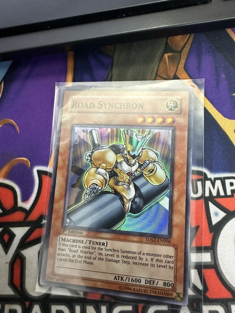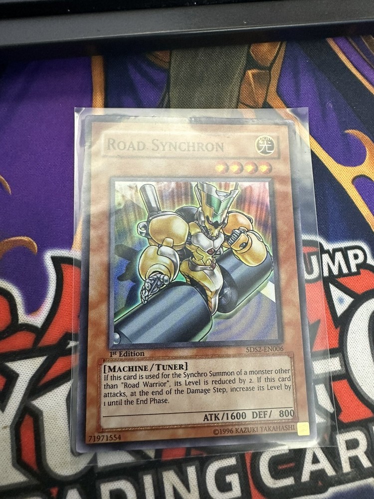 Experience the thrill of the Yu-Gi-Oh! TCG with this Super Rare 1st Edition Road Synchron card. This Japanese-sized card is made of high-quality card stock with a holographic finish that shimmers in the light. Its card number is 5DS2-EN006 and it belongs to the Yu-Gi-Oh! 5D's set. This Tuner card has 800 Defense/Toughness and 1600 Attack/Power, making it a formidable addition to your collection. Its card features a Machine creature/monster type and is in English language. Don't miss out on the chance to own this rare and coveted card manufactured by Konami in the United States.