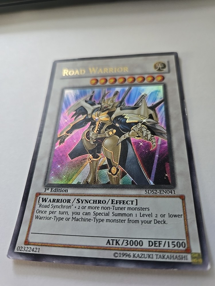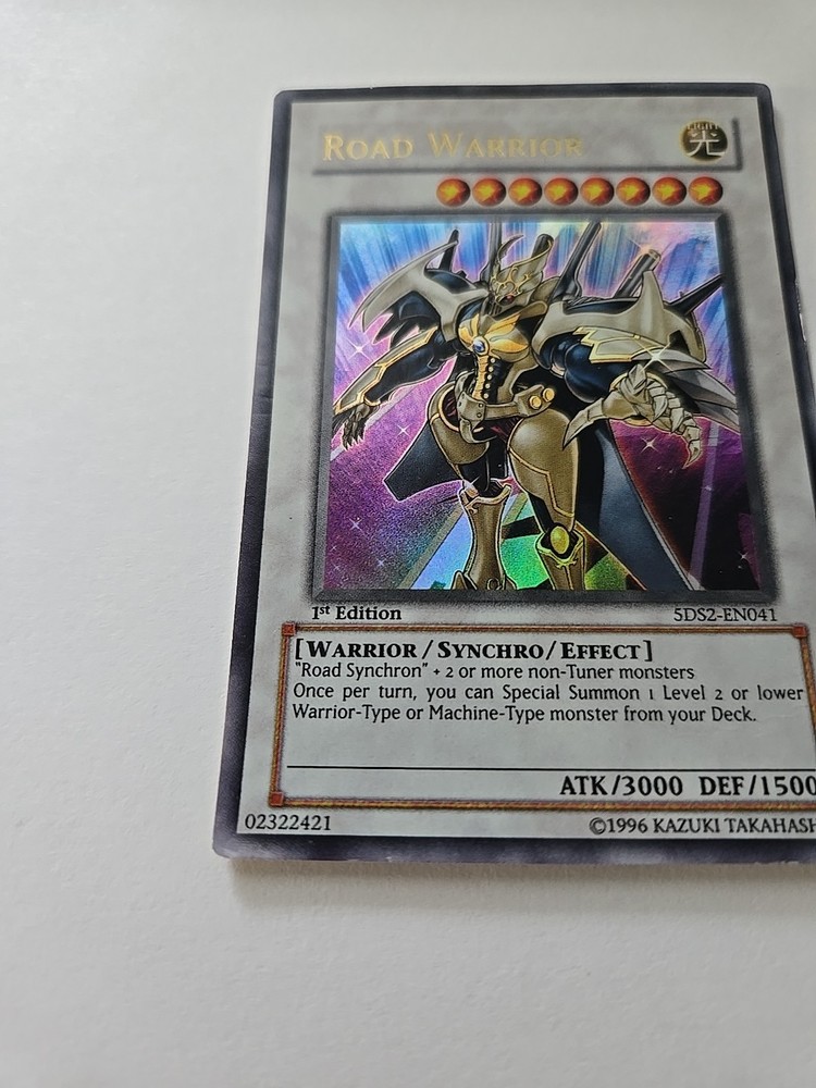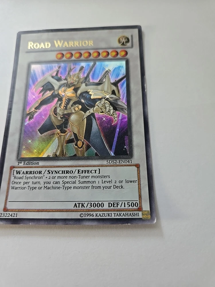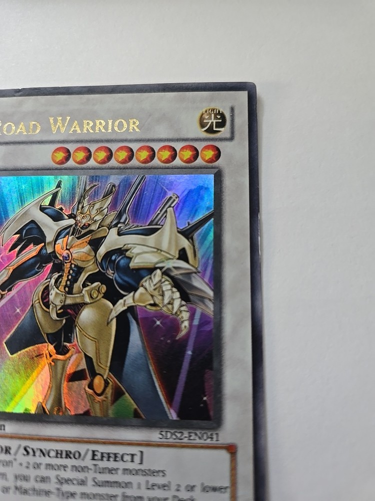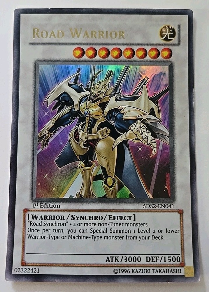 Level up your Yu-Gi-Oh! TCG collection with the Road Warrior, a formidable Warrior Synchro monster with the card number 5DS2-EN041. This Ultra Rare 1st Edition card boasts an attack power of 3000 and a defense strength of 1500, making it a force to be reckoned with in your duels. Item# 44 Binder