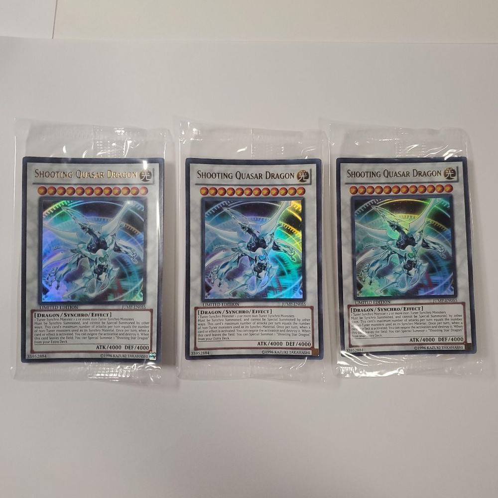 Item Title Yu-Gi-Oh! Shooting Quasar Dragon English Version 3 Sets Payment Supports managed payments Please pay within 5 days after auction is finished. About Us We are located in Japan. It's our pleasure to make you happy by proposing our recommend item. If you have any questions or request about items, please feel free to ask us. International Buyers - Please Note: -Import duties, taxes, and charges are not included in the item price or shipping charges. These charges are the buyer's responsibility. -Please check with your country's customs office to determine what these additional costs will be prior to bidding/buying. -These charges are normally collected by the delivering freight (shipping) company or when you pick the item up - do not confuse them for additional shipping charges. -We do not mark merchandise values below value or mark items as - gifts - The US and International government regulations prohibit such behavior. Thank you for your understanding.