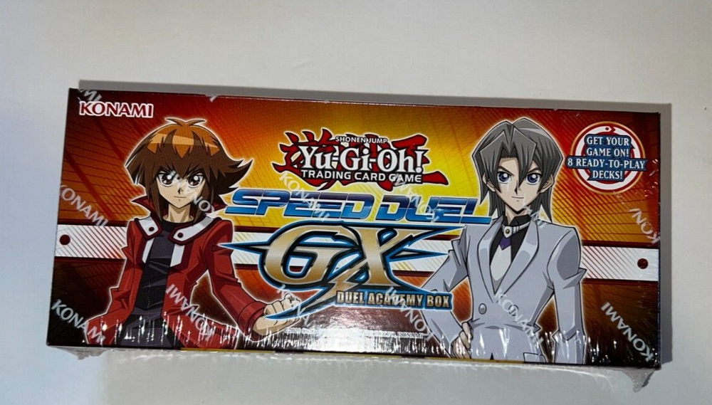 New in Shrink: Up for sale is a brand new and sealed Yu-Gi-Oh! Speed Duel GX Duel Academy Box. This exciting set is perfect for both casual and competitive Yu-Gi-Oh! players, featuring 8 ready-to-play decks inspired by the iconic GX era of the anime series. Condition: Brand new, factory sealed. Game System: Yu-Gi-Oh! Trading Card Game - Speed Duel Contents: Includes 8 ready-to-play decks featuring characters like Jaden Yuki and Zane Truesdale, perfect for recreating classic duels from the GX series. Whether you're a collector or looking to dive into Speed Duels, this Duel Academy Box is a must-have!