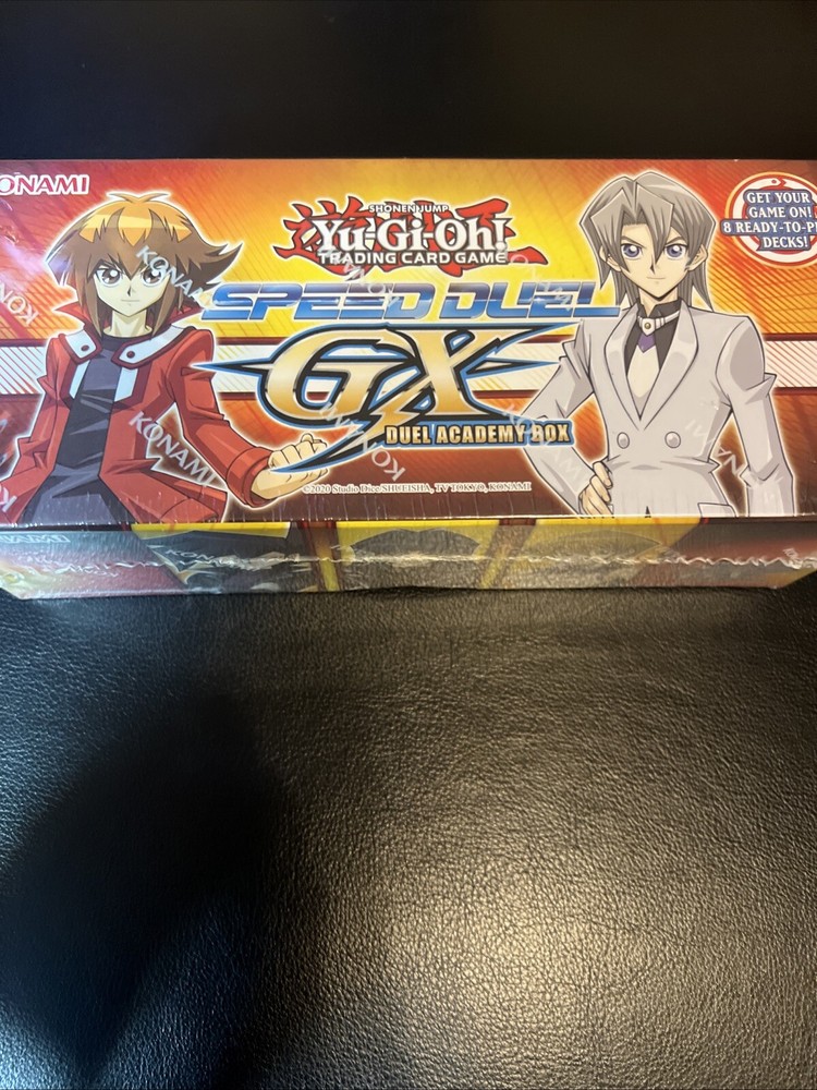 Experience the excitement of the Yu-Gi-Oh! TCG with the Speed Duel GX: Duel Academy Box. This factory-sealed box contains 48 standard-sized cards featuring Aayla Secura and other characters from the world of Yu-Gi-Oh! The box includes a Speed Duel Starter Deck, Booster, Structure Deck, Starter Deck, 1st Edition, and Chase cards, all in English language and illustrated by 5ban Graphics. The box is made of aluminum and card stock materials, and is suitable for ages 16 and up. This collectible card game set from Konami features cards from the Yugi set, and is perfect for fans of the game. The box is categorized under Toys & Hobbies, Collectible Card Games, and CCG Sealed Boxes, and is a must-have for any Yu-Gi-Oh! enthusiast.