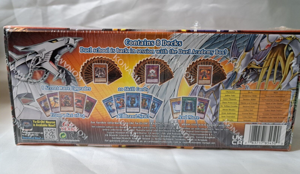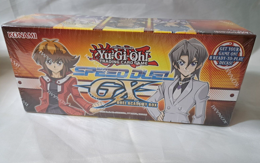This is a sealed box of Yu-Gi-Oh! Speed Duel GX: Duel Academy cards, featuring 1st Edition cards in English language. The box contains cards of Japanese card size and is from the manufacturer Konami, with a 2022 year of manufacture. The set is perfect for collectors of Yu-Gi-Oh! TCG cards and is designed for players aged 4 and above. The configuration is a box and the cards are not autographed. Enjoy the excitement of opening a new box and discovering the treasures inside.