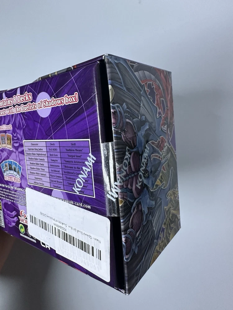 This Speed Duel GX box is a fantastic addition for any Yu-Gi-Oh! fan—packed with exclusive Shadow-themed cards that bring fresh strategies to the game. The sealed condition ensures mint-quality collectibles, and the limited release makes it even more special. Whether you're dueling or collecting, this set delivers great value and excitement!