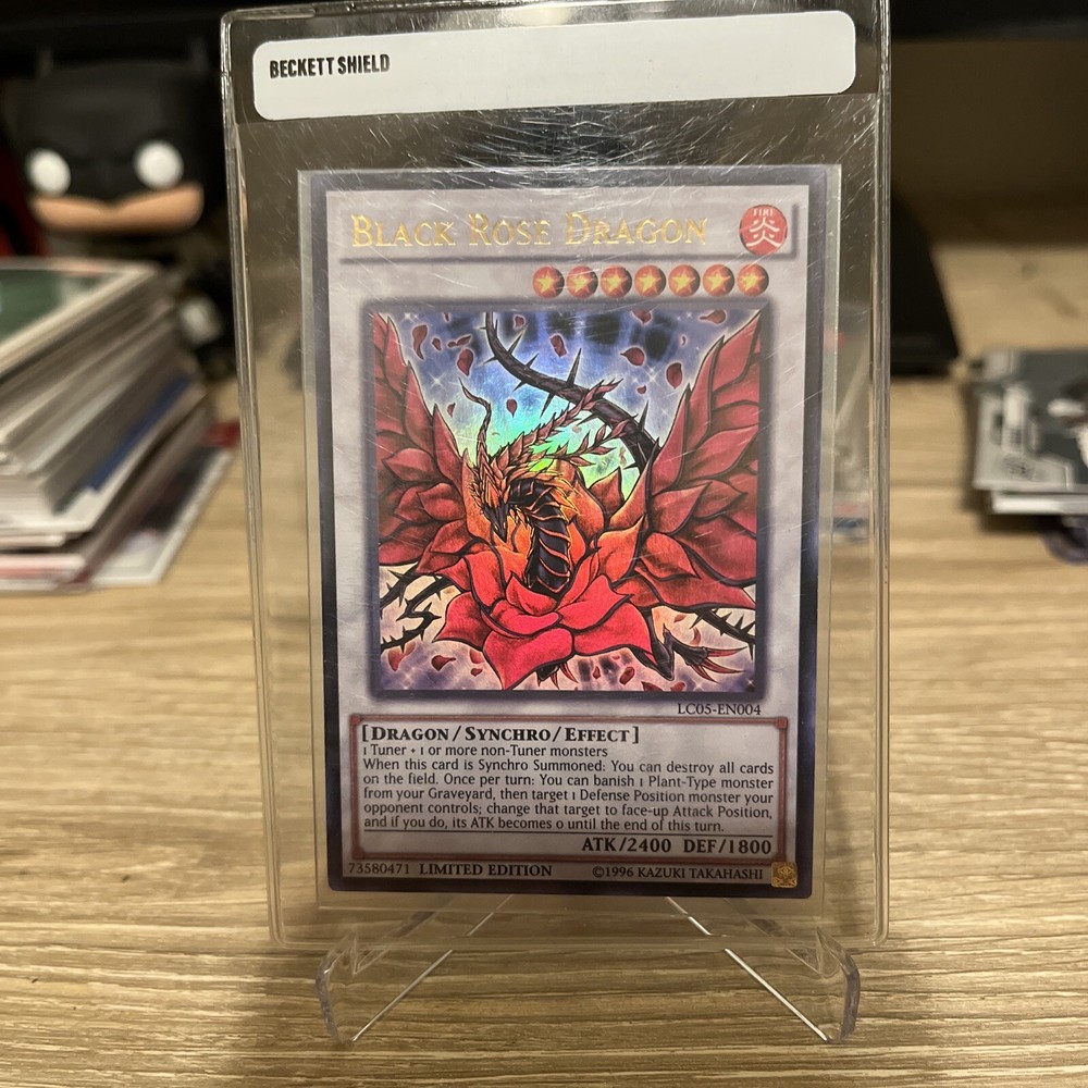 This Yu-Gi-Oh! TCG card is a must-have for any collector. The Black Rose Dragon is a highly sought-after card with a rare Legendary Collection 5D's LC05-EN004 Limited Edition feature. It boasts a staggering 2400 Attack/Power and 1800 Defense/Toughness, making it a formidable addition to any deck. The creature/monster type is a Dragon and the card type is a Synchro/Effect. This card is Fire attribute and has a Rarity of Legendary. It belongs to the set Legendary Collection 5D's and has a card number of Lc05-En004. With these impressive aspects, this card is a valuable addition to any collection and a powerful asset to any player's deck.