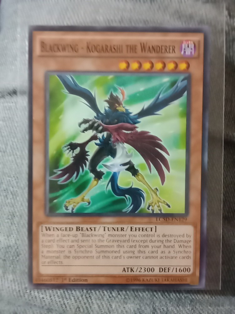 This Yu-Gi-Oh! TCG card from the Legendary Collection 5D's is a first edition Blackwing - Kogarashi the Wanderer. With a creature/monster type of Winged Beast, this card has an attack power of 2300 and a defense/toughness of 1600. It is a tuner card with card number LC5D-EN129 and a rarity of Common. Perfect for collectors of CCG individual cards, this card is from the set Yu-Gi-Oh! TCG and features the color dark. Whether you're a long-time fan or a newcomer to the game, this Blackwing - Kogarashi the Wanderer card is a must-have addition to your collection.