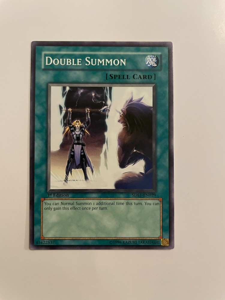 Yu-Gi-Oh! TCG Double Summon Yu-Gi-Oh! 5D's 5DS1-EN029 1st Edition Common Description About This Items This Yu-Gi-Oh! TCG card is a must-have for any collector or player. It features the Double Summon spell, which is a common card in the game. The card is from the Yu-Gi-Oh! 5D's set and has the card number 5DS1-EN029. This 1st Edition card is a Spell-Normal type, manufactured by Konami. Its rarity is Common and it belongs to the Attribute/MTG:Color category. The card is perfect for anyone looking to complete their collection or enhance their deck. Condition used Shipping We always send the item with a tracking number. So please place an order without any concern on delivery. You can always track the delivery status. Shipping is only available to the address registered in eBay. If you want us to send another address, please change your address on eBay and then place an order. Shipping is available from Monday to Friday. Weekends are not available because freight (shipping) companies are closed. We do not mark merchandise values below value or mark items as ?gifts? ? Japan, US and International government regulations prohibit such behavior. About Importer's Obligation Import duties, taxes, and charges are not included in the item price or shipping cost. These charges are the buyer's responsibility. Please check with your country's customs office to determine what these additional costs will be prior to bidding or buying. Thank you for your understanding.