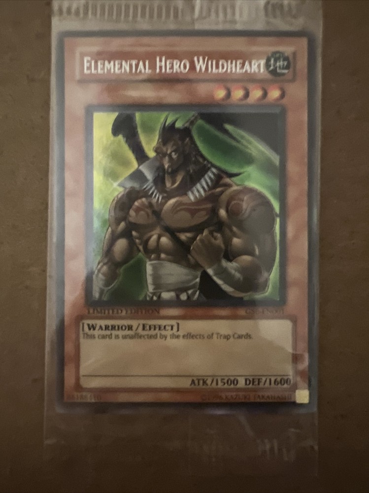 This is Elemental Hero Wildheart Limited Edition GSE-EN001. It is still in a factory sealed plastic sleeve, never opened. If you have any questions please let me know.