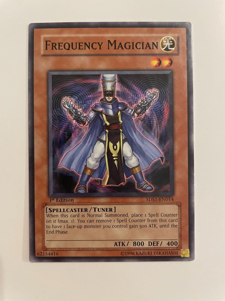 Yu-Gi-Oh! TCG Frequency Magician Yu-Gi-Oh! 5D's 5DS1-EN014 1st Edition Common Description About This Items Enhance your Yu-Gi-Oh! TCG collection with this rare Frequency Magician card from the Yu-Gi-Oh! 5D's set. This 1st edition common card features a Light attribute and a Spellcaster creature type. Manufactured by Konami in 1996, it has a defense/toughness of 400 and an attack/power of 800. This Tuner card is perfect for any Yu-Gi-Oh! TCG game and is a must-have for any collector. Its card number is 5DS1-EN014 and it belongs to the CCG Individual Cards and Collectible Card Games categories. Add this gem to your collection today! Condition used Shipping We always send the item with a tracking number. So please place an order without any concern on delivery. You can always track the delivery status. Shipping is only available to the address registered in eBay. If you want us to send another address, please change your address on eBay and then place an order. Shipping is available from Monday to Friday. Weekends are not available because freight (shipping) companies are closed. We do not mark merchandise values below value or mark items as ?gifts? ? Japan, US and International government regulations prohibit such behavior. About Importer's Obligation Import duties, taxes, and charges are not included in the item price or shipping cost. These charges are the buyer's responsibility. Please check with your country's customs office to determine what these additional costs will be prior to bidding or buying. Thank you for your understanding.
