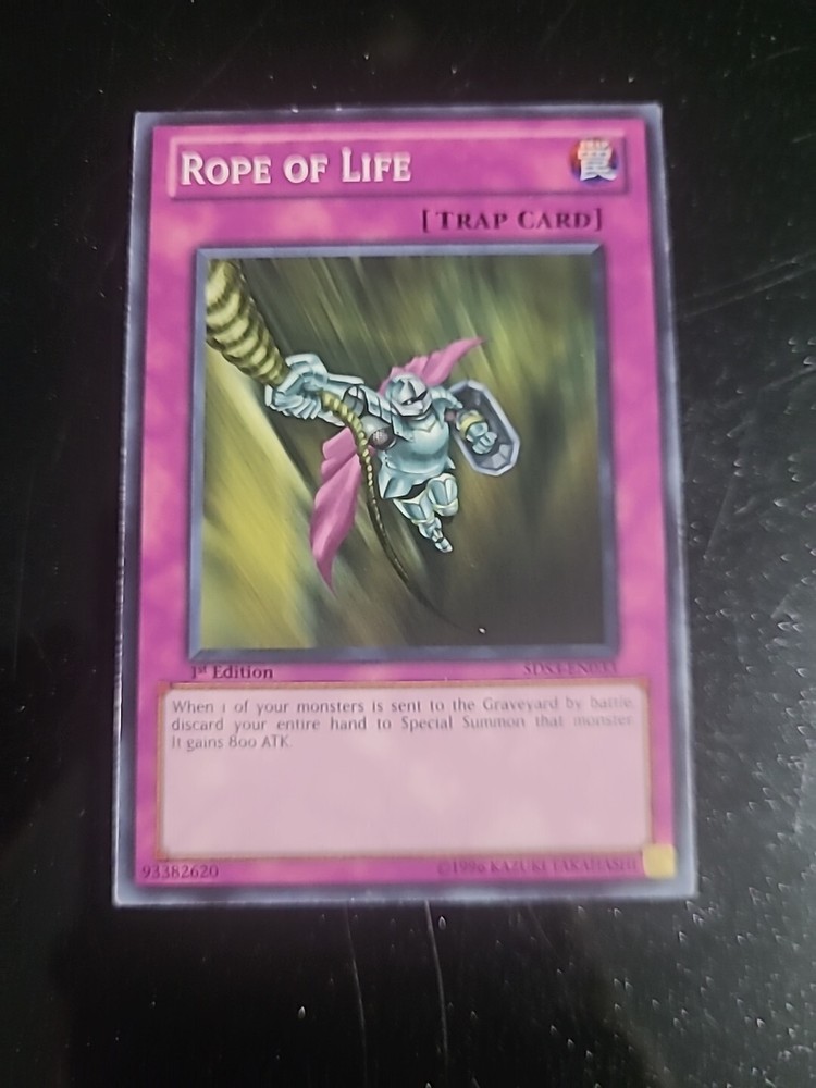 This card is a game-changer! Rope of Life adds a powerful defensive boost to any deck, letting you revive a monster with extra ATK when you’re in a pinch. The artwork is crisp, and the Unlimited Common version makes it easy to grab for casual or competitive play. A solid pick for duelists who love strategic traps—totally worth adding to your collection!