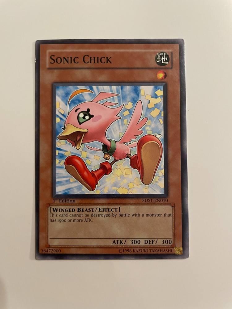 Yu-Gi-Oh! TCG Sonic Chick Yu-Gi-Oh! 5D's 5DS1-EN010 1st Edition Common Description About This Items This Yu-Gi-Oh! TCG card features the Winged beast type Sonic Chick, with 300 defense/toughness and 300 attack/power. It is a 1st edition common card from the 1996 Yu-Gi-Oh! 5D's set, with the card number 5DS1-EN010. The card is in English language and manufactured by Konami. The card's attributes include the Earth color and the effect card type. It is a collectible card game individual card, with features including the rarity of being a common card. The game is Yu-Gi-Oh! TCG and the card is part of the 5D's set. Condition used Shipping We always send the item with a tracking number. So please place an order without any concern on delivery. You can always track the delivery status. Shipping is only available to the address registered in eBay. If you want us to send another address, please change your address on eBay and then place an order. Shipping is available from Monday to Friday. Weekends are not available because freight (shipping) companies are closed. We do not mark merchandise values below value or mark items as ?gifts? ? Japan, US and International government regulations prohibit such behavior. About Importer's Obligation Import duties, taxes, and charges are not included in the item price or shipping cost. These charges are the buyer's responsibility. Please check with your country's customs office to determine what these additional costs will be prior to bidding or buying. Thank you for your understanding.