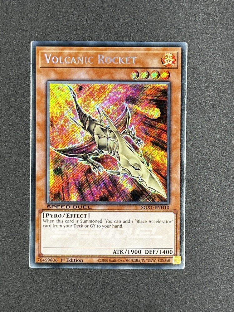 Yu-Gi-Oh! TCG Speed Duel GX: Duel Academy Box Volcanic Rocket (Secret Rare) card condition can be seen in photos. Card will ship using eBay pwe shipping for free.