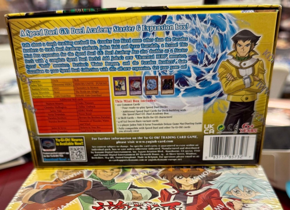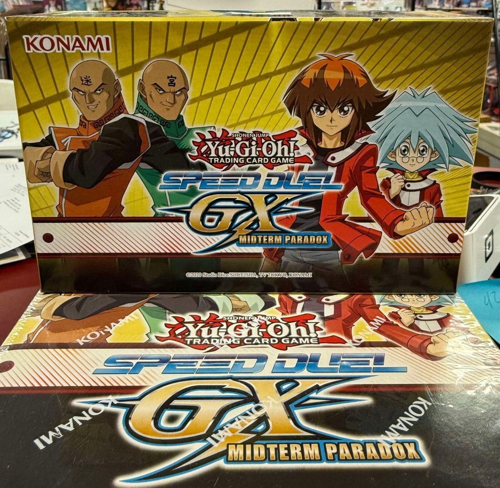 ITEM DESCRIPTION You are buying a factory sealed new; Yu-Gi-Oh TCG Speed Duel GX: MIDTERM PARADOX Mini box, these are loaded boxes and would make great gifts. nice for making a box opening video too and are super discounted. Here is what is inside; Speed Duel GX: Midterm Paradox Mini Box expands on the Speed Duel GX: Duel Academy Box introducing even more cards from the Yu-Gi-Oh! GX animated series that are new to Speed Duel! Speed Duel GX: Midterm Paradox is a 100-card static set that contains 4 complete Speed Duel Decks ready-to-play out of the box! Here is just some of what you can expect. • Pre-built Decks for Jaden Yuki, Syrus Truesdale, Bastion Misawa, and the Paradox Brothers! • Brand-new Skill Cards for iconic Yu-Gi-Oh! GX characters! • Explore new strategies with additional cards and upgrade the Speed Duel Decks you already own! • Discover Secret Rare variants of popular GX-era cards! • Play with it on its own, or as a perfect complement to the Speed Duel GX: Duel Academy Box Each Speed Duel GX: Midterm Paradox Mini Box contains: • 100 Common Cards • 12 Skill Cards • 4 (of 12) Secret Rares • 1 Two-Player Jaden Yuki & Syrus Truesdale Deluxe Game Mat ABOUT US We are a 7,000 square foot comic book entertainment store located in Southwest Indiana in Evansville. We have been in business for over 28 years and strive hard to achieve a high level of customer service. If, for any reason, you have questions after you've received the item, don't just leave negative feedback. Please contact us with any issues, concerns, or problems. Communication is important to us, and we will do everything we can to make your purchase a pleasant one from start to finish. Visit Comic Quest eBay Store & Online Auctions for the other nice comics, exclusives and other unique items. We do combine shipping cost to save you money but please remember to contact us prior to paying so we can make sure you received your shipping discount. Bid now!! GET IT NOW BEFORE ITS GONE! * Terms: Bids from International Bidders will not be accepted unless special arrangements can be made, please inquiry before bidding.PayPal only and all major credit cards. SHIPPING * Buyer is responsible for contacting seller if buyer has a change of address or if there is a conflict between buyer's listed eBay mailing address and Paypal mailing address. We are not responsible for merchandise lost due to address changes once merchandise has been shipped. * Combined shipping is available if bidding on multiple auctions from comicquest.com, it is the buyer's responsible to contact us via email before paying for any of the auctions to receive the combined shipping discount. * Buyer agrees to pay shipping and handling to anywhere in the United States, unless otherwise noted or requested , all domestic shipments will be sent using the United States Post Office. International winners MUST contact us prior to bidding to receive USPS Priority Mail quote and all international shipments will be sent using using some form of priority shipping. SHIPPING UPDATE! PLEASE READ! DUE TO CURRENT STATUS OF THE UNITED STATES POSTAL SERVICE, SOME SHIPMENTS MAY BE DELAYED. WE CAN'T PROMISE ANDY SHIPMENT WILL ARRIVE ON TIME. PLEASE BE PATIENT AND CHECK YOUR TRACKING NUMBER. PAYMENT * Payment is expected within 7 days of the end of the auction. * Orders usually ship within 48 hours if received Monday-Friday. If the buyer wishes to arrange insurance for an auction, it is the responsibility of the buyer to contact comicquest.com prior to paying for any auction. * International Buyers: We no longer offer International shipping due to USPS price increases and lost merchandise. If you are willing to pay for USPS International Priority Shipping which offers tracking and insurance then please contact us prior to bidding to get a shipping cost quote. * Please bid only if you are intend to complete the transaction if you win.