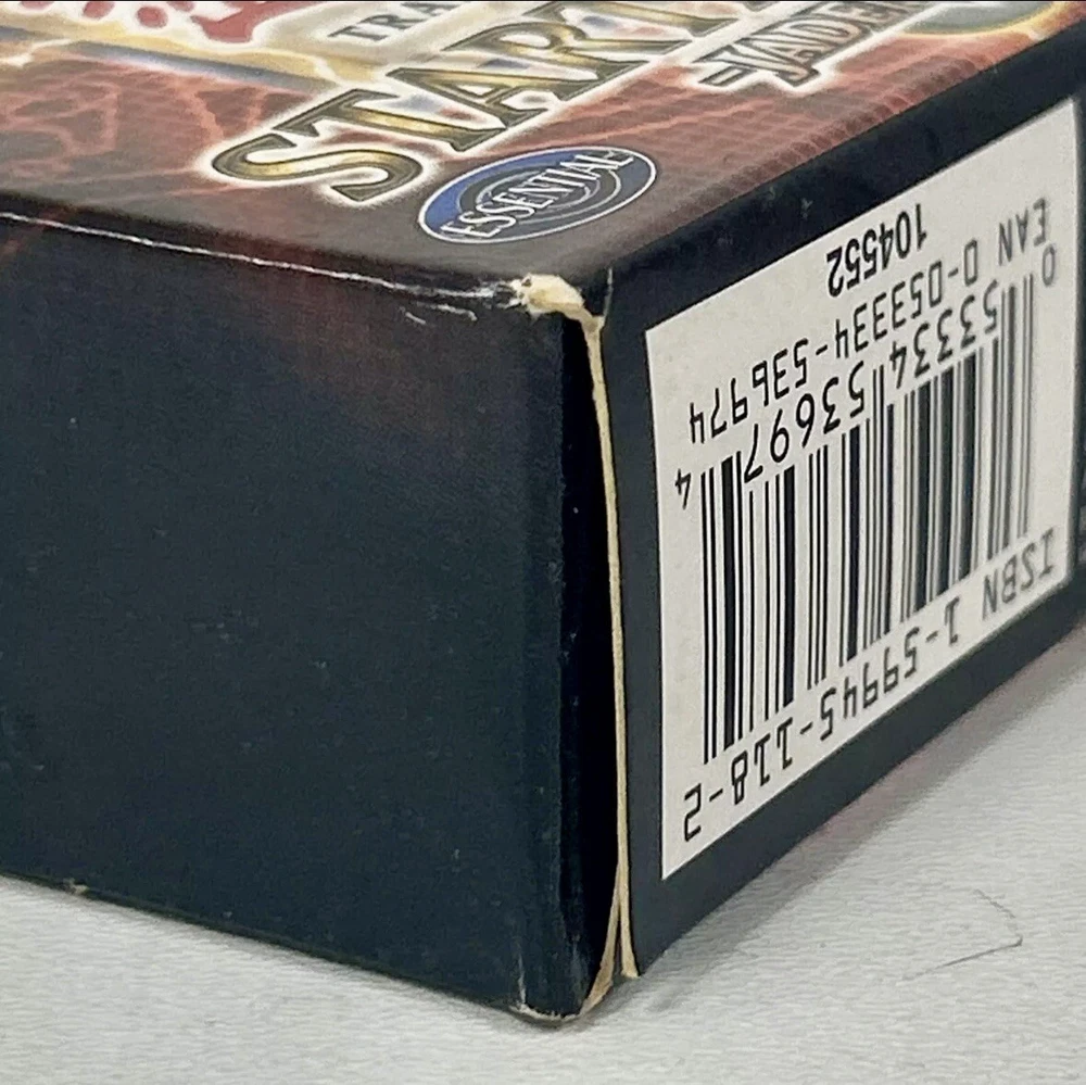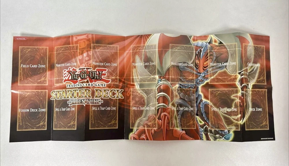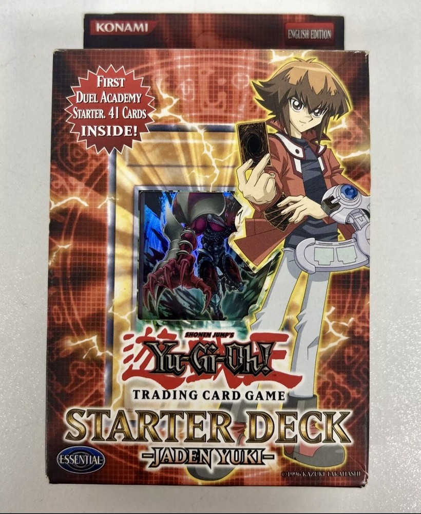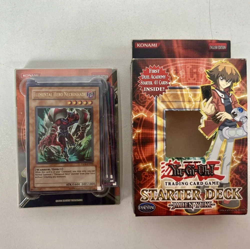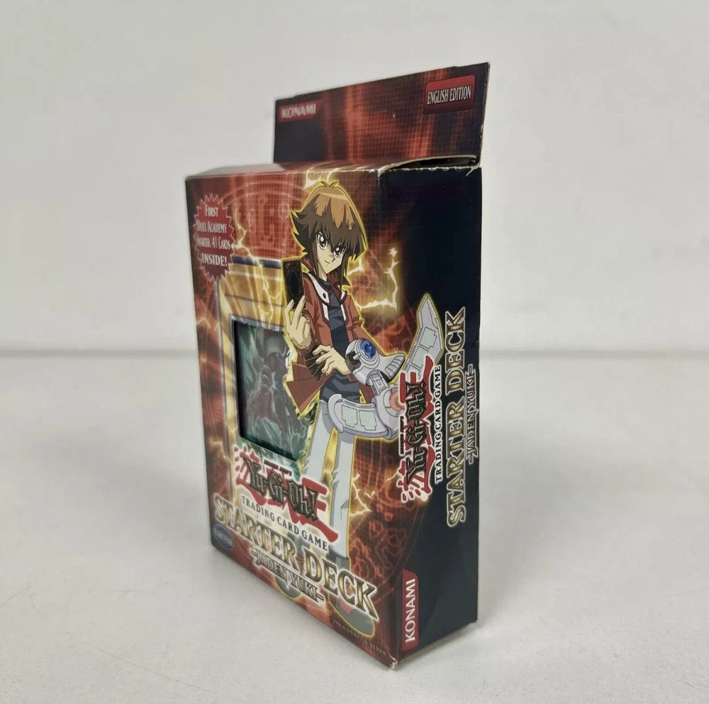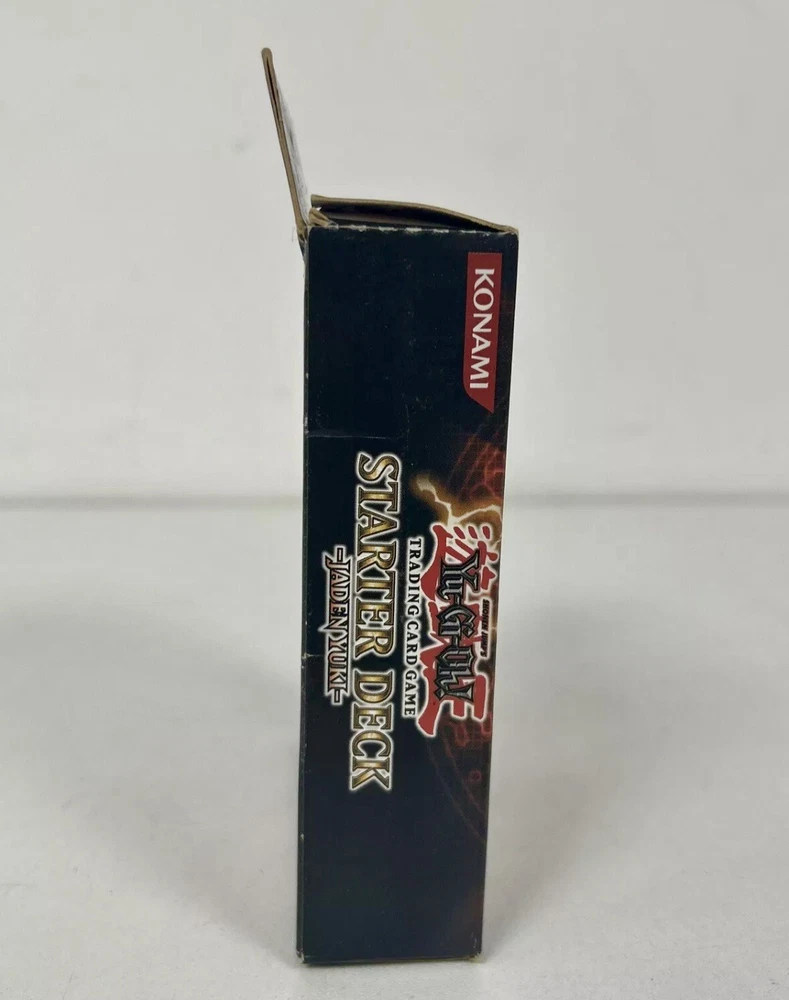 This is a Yu-Gi-Oh! Starter Deck featuring Jaden Yuki, with an unlimited edition LP open box. The deck includes 41 cards and is configured for optimal play. The archetype is Yu-Gi-Oh! GX and it was manufactured by Konami in 2007. The deck is in English and is suitable for ages 6 and up. The features of this deck include a starter deck and it is sold as a single deck or kit. This item is perfect for collectors and fans of the Yu-Gi-Oh! franchise. Includes Playmat and Rule Book.