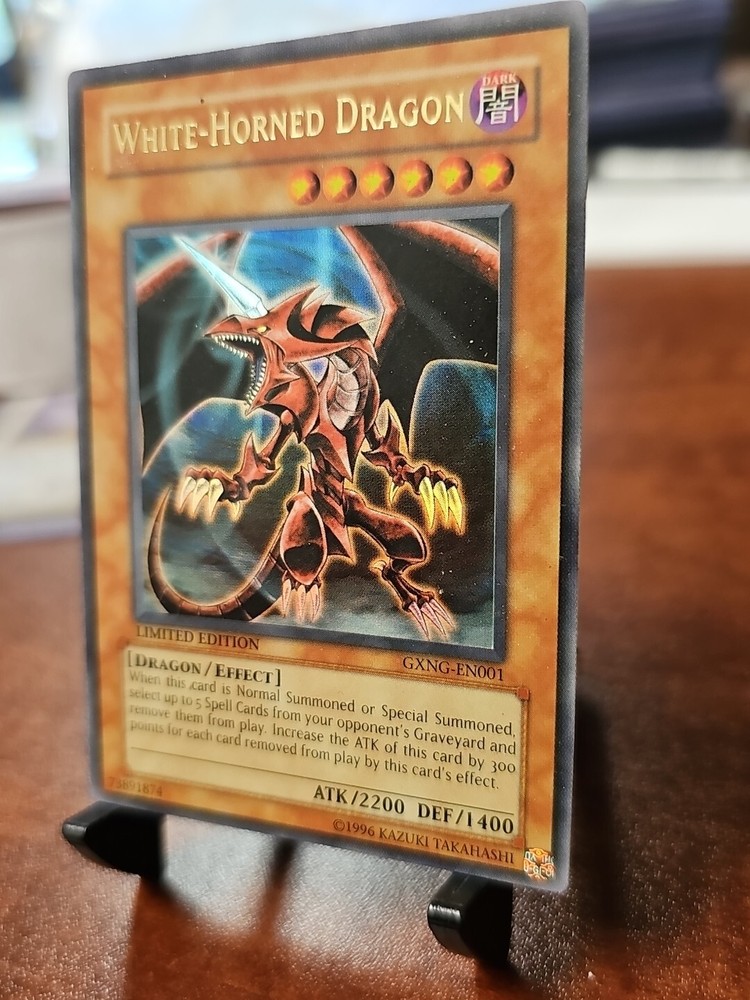 Experience the power of the White-Horned Dragon with this limited edition ultra rare card from the Yu-Gi-Oh! TCG. This card features a stunning holo finish and is part of the GX Next Generation set. It is a must-have for any collector or player looking to add a unique and powerful card to their deck. With its dark colour and dragon/effect card type, this White-Horned Dragon card is sure to impress. It was manufactured by Konami in 2007 and is in English language. Don't miss out on the chance to own this rare and sought-after card.