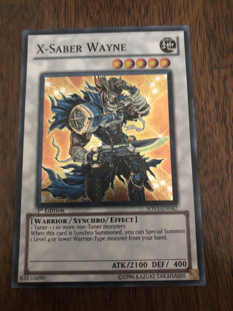 X-Saber Wayne NM 1st Edition Super Rare from Starter Deck: Duelist Toolbox. All cards are pack fresh unless otherwise specified. All cards are in a poly sleeve and top loader. Standard shipping. All cards are shipped in a poly sleeve, top loader, and team bag.