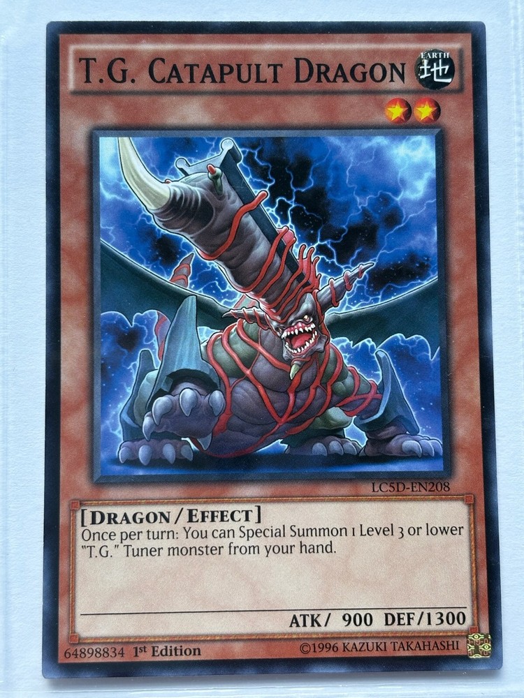 This Yu-Gi-Oh T.G. Catapult Dragon is in great 1st Edition condition—clean, never played, and well-protected with a sleeve, toploader, and team bag. Perfect for collectors or players looking for an affordable addition to their deck. The seller ships carefully, and bulk orders get USPS Ground Advantage. Very happy with the purchase!