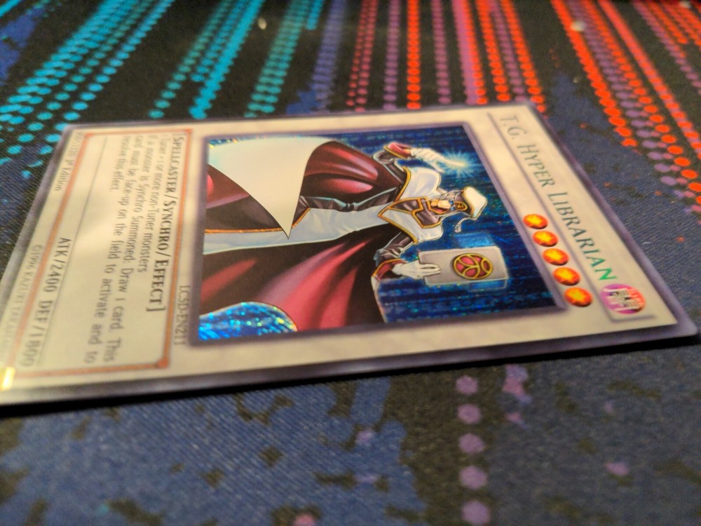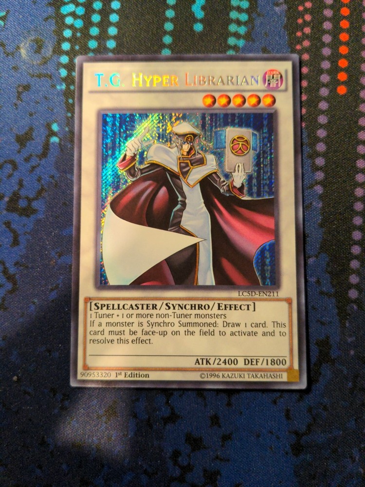 This Yu-Gi-Oh T.G. Hyper Librarian card from the Legendary Collection 5D's set is a must-have for any collector of CCG individual cards and collectible card games. Its secret rare rarity and English language make it truly valuable. The card features a synchro card type and a Japanese card size, making it a unique addition to any collection. Manufactured by Konami, this card is sure to impress any fan of the Yu-Gi-Oh! TCG game. Add this T.G. Hyper Librarian card to your collection today!