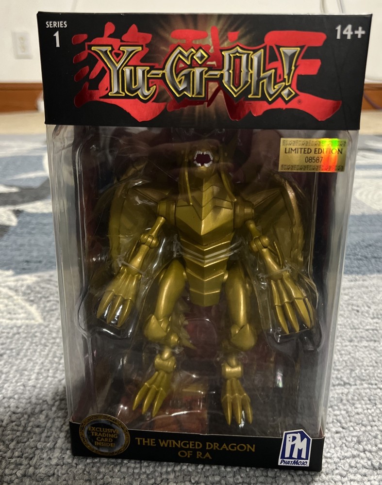 This collectible PhatMojo action figure is a must-have for any Yu-Gi-Oh! fan. Featuring the legendary Winged Dragon of Ra from the animated series, this 7-inch figure is made with high-quality materials and boasts impressive attention to detail. The multicolor design and exclusive features make it a unique addition to any collection. With its limited edition status, this Yu-Gi-Oh! action figure is a rare find for collectors and enthusiasts alike. The figure is perfect for display or play, and its association with the popular franchise and TV show adds to its value. Don't miss out on the chance to own this impressive piece of memorabilia. Best offer wanted!! The listing price is just a number. Your offer is most important so please do not hesitate to give me your best offer. Thank you for your interest. God bless!