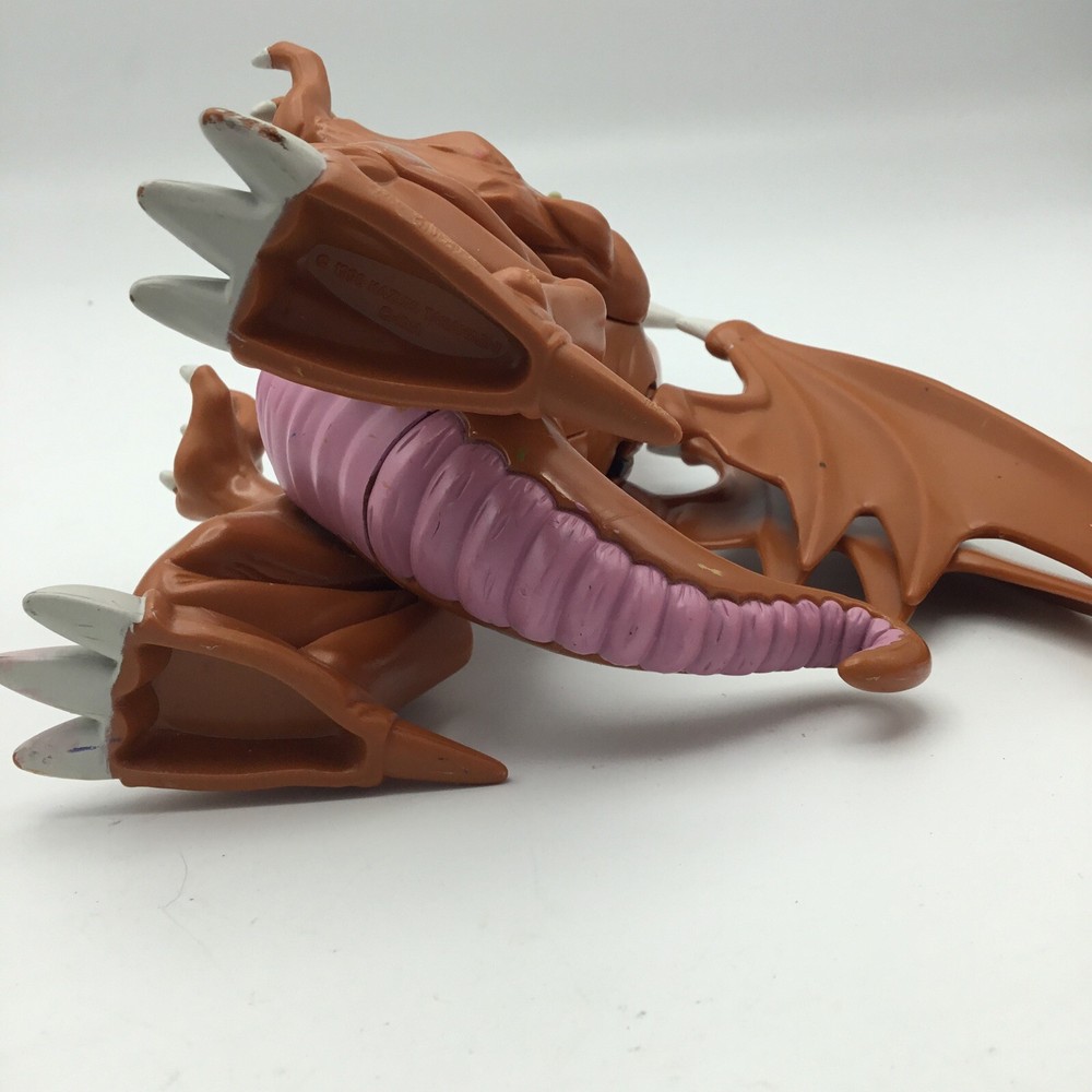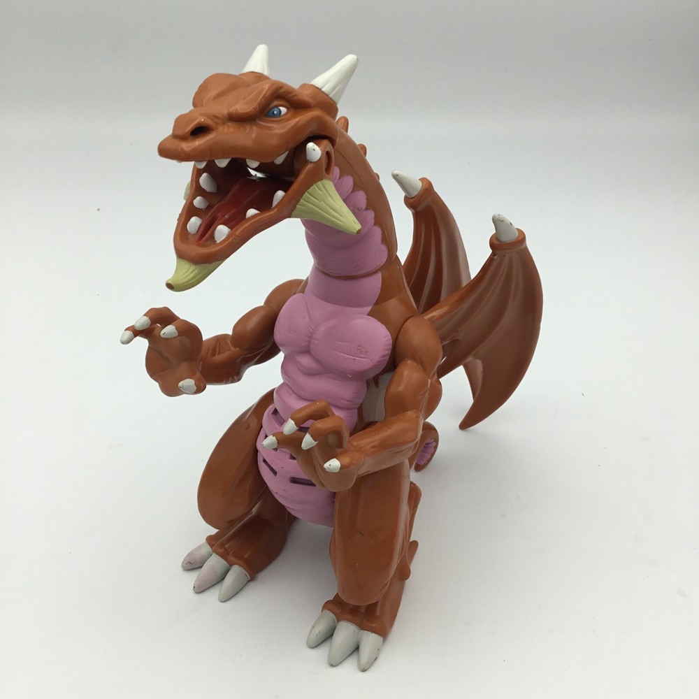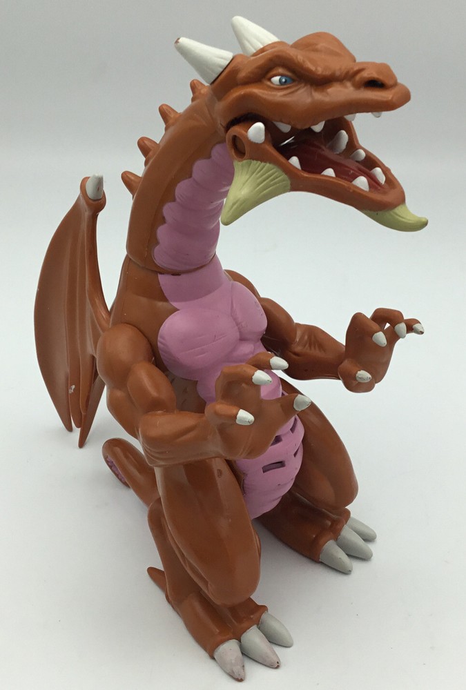 Yu-Gi-Oh! Thousand Dragon 1996 Kazuki Takahashi Mattel 8" Action Figure. Uses watch batteries I didn’t have on hand so not sure if he still roars. Battery compartment looks clean. Some wear to the body and paint. Good for 1996.