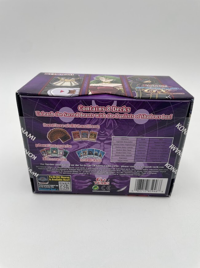 The product is a set of 8 Yu-Gi-Oh! trading card game decks from the Duelists of Shadows series. Manufactured by Konami, these standard-sized packs are designed for players aged 6 and up. Each pack contains cards from the Yugi set, providing players with a variety of cards to enhance their gameplay experience. Perfect for collectors or players looking to expand their deck options, these packs offer a new and exciting addition to the Yu-Gi-Oh! trading card game.